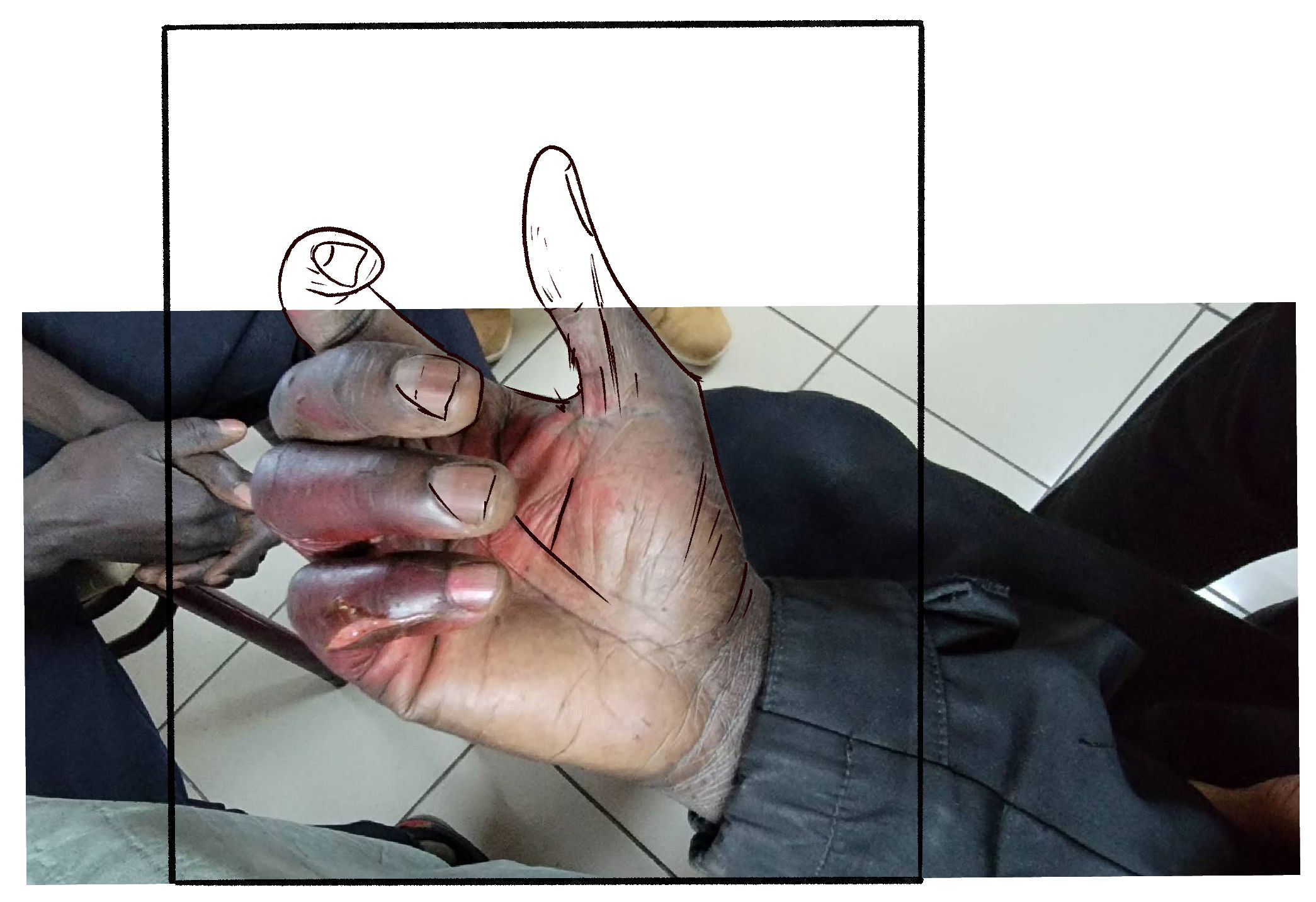 Um congolês que diz que os militares gregos saltaram em cima das suas mãos várias vezes. Foto Josoor