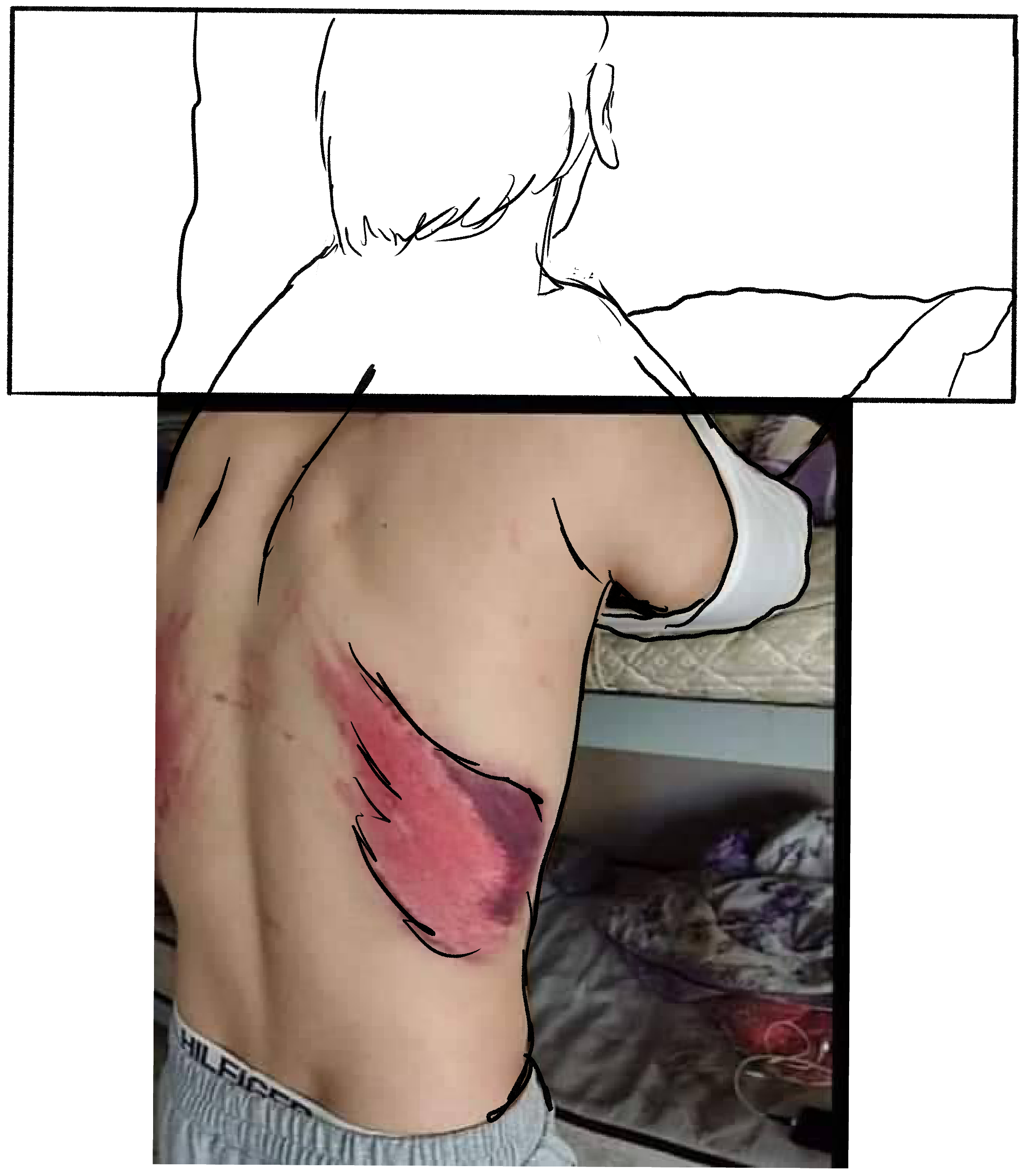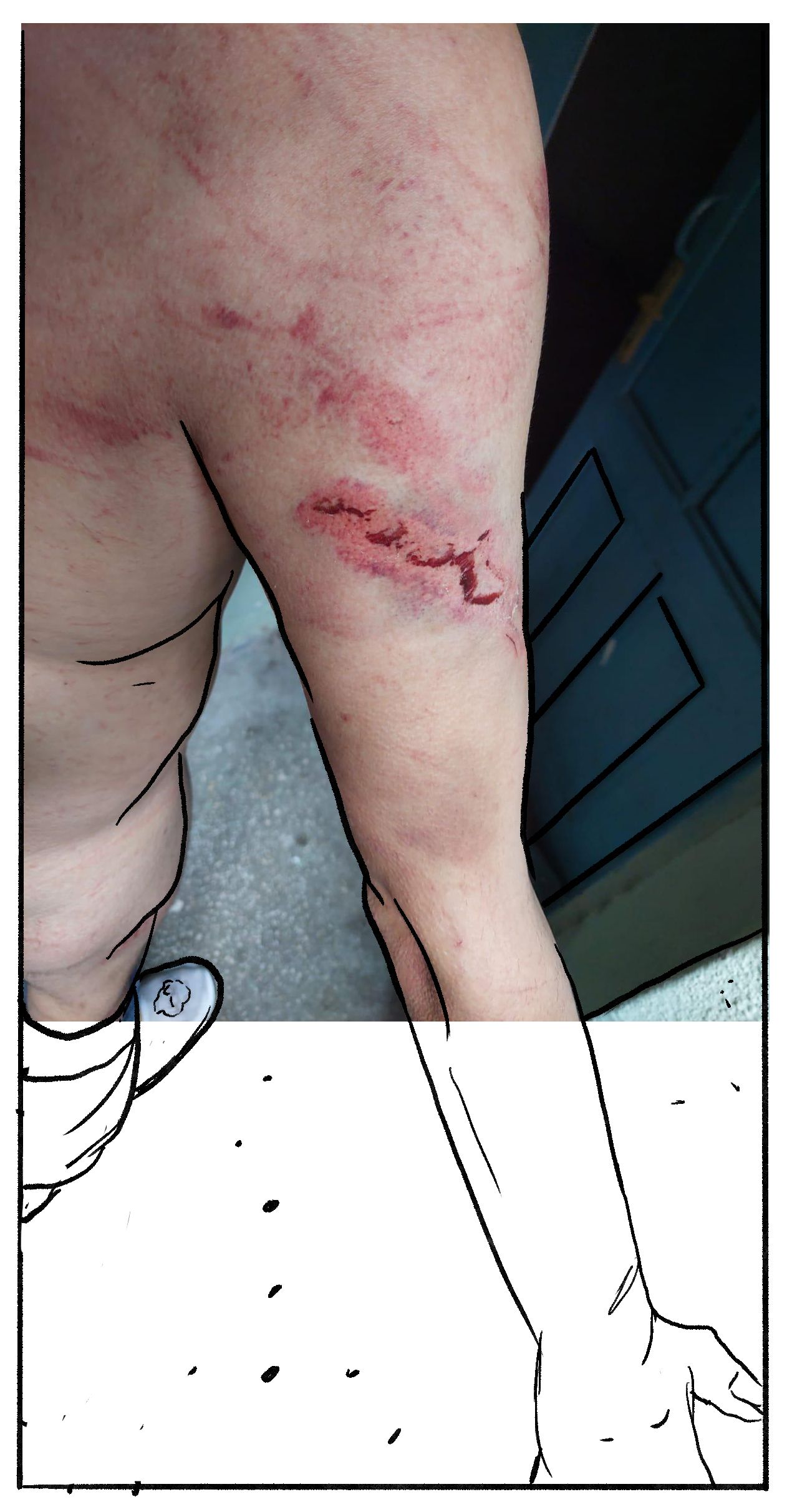 O ferimento de um dos rapazes que chegaram ao hostel Limon depois de terem sido devolvidos. Foto Josoor
