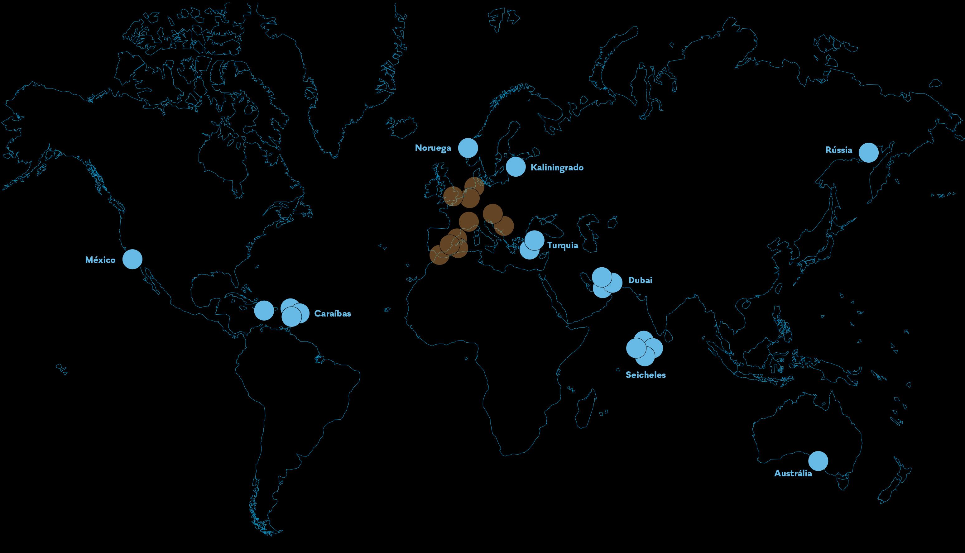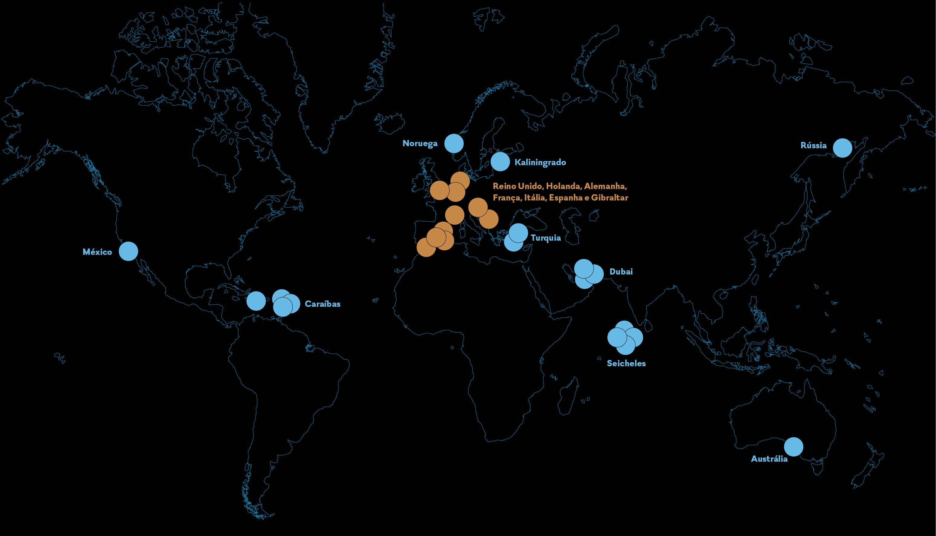 Para fugir às sanções, os oligarcas procuram colocar os seus iates em portos distantes das autoridades europeias e norte-americanas. Os locais favoritos são as ilhas paradisíacas das Seicheles e Caraíbas, mas também procuram portos no México, Dubai, Austrália ou Turquia, onde Abramovich tem os seus dois iates. O melhor refúgio de todos é mesmo Kaliningrado, na Rússia, para onde Putin levou o seu brinquedo de luxo.