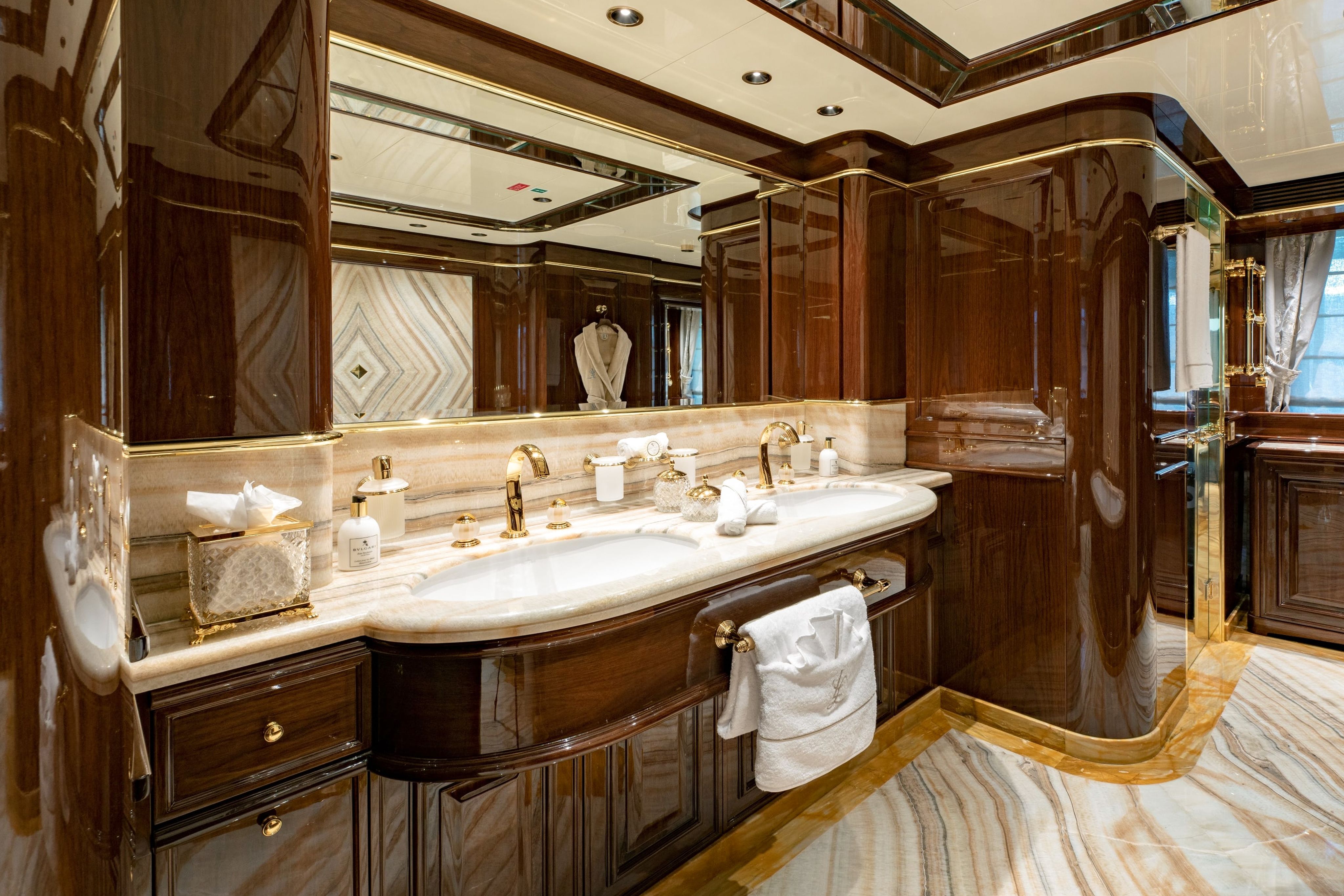 O “Scheherazade“ tem tanto de mistério como de esplendor. Com os seus impressionantes 140 metros de comprimento, o iate tem dois heliportos, um deles reservado aos proprietários, como é comum em iates semelhantes. No interior, existe um teatro, salões de festas, várias piscinas, ginásio totalmente equipado, spa, e, nas casas de banho das suítes, torneiras e acessórios alegadamente banhados a ouro, de acordo com um trabalhador não identificado envolvido na construção do barco, em entrevista ao The Sun.