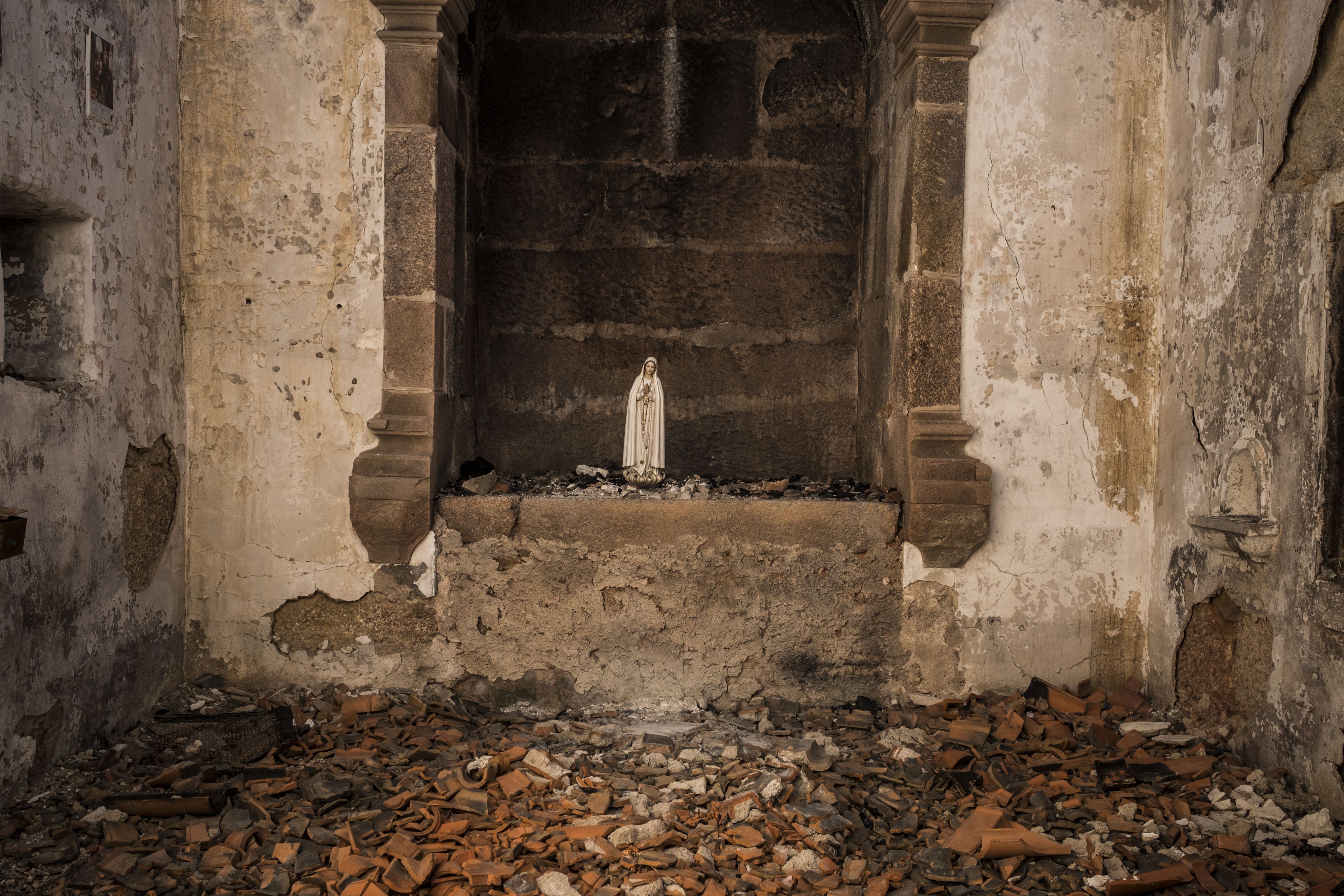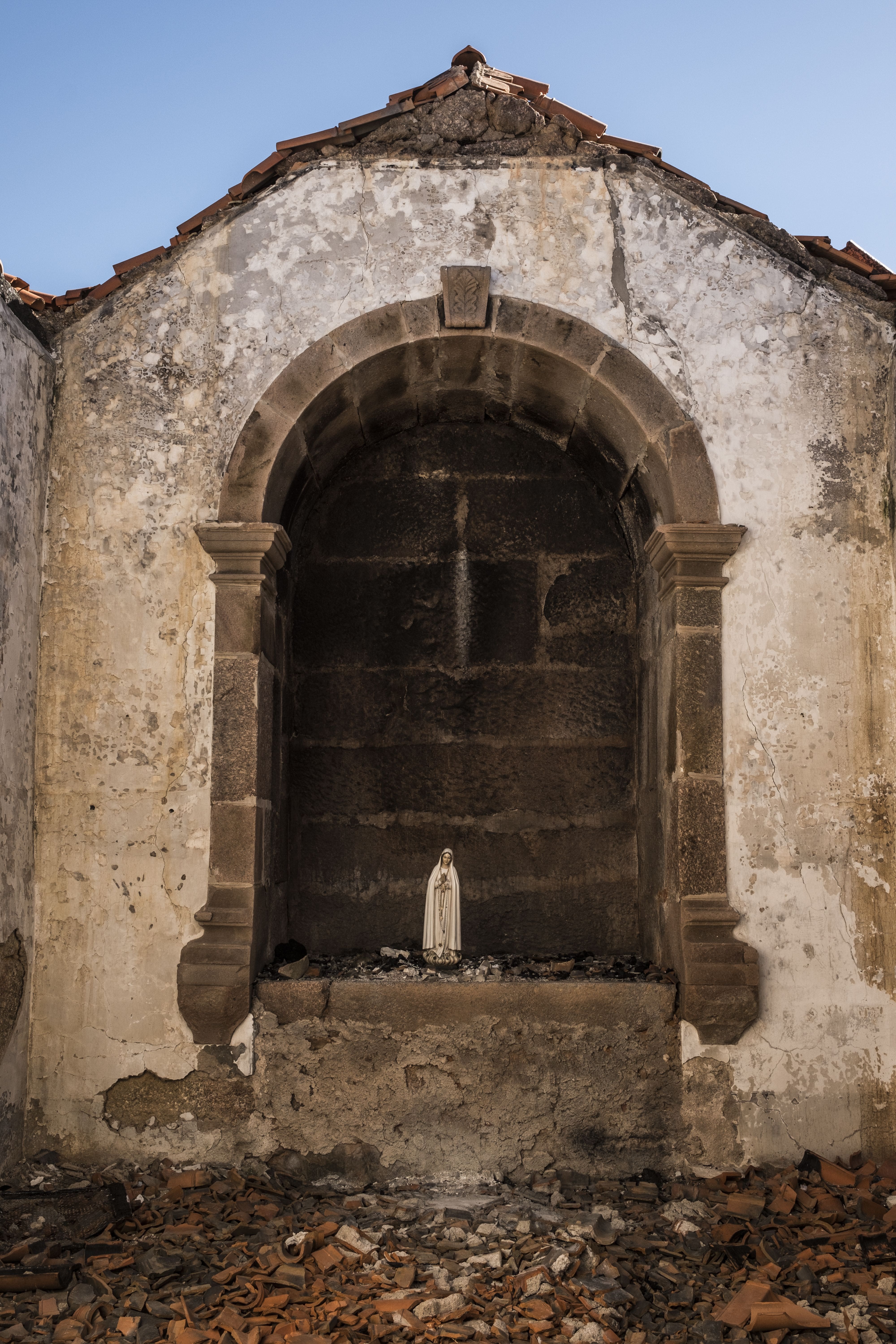 A conversa corre numa corrida na casa do casal. Um ano passado e as paredes de pedra estão ainda cor de fumo. Na divisória branca de madeira que separa o quarto do resto da residência, Camila ainda começou a passar um pano molhado, mas não conseguiu mais do que desenhar zonas menos cinzentas entre o crucifixo, a fotografia de um casamento e a pagela emoldurada do Sagrado Coração de Maria. Parece que o fumo se entranhou e tornou definitiva a nova patine. “E o cheiro a queimado? Não sentem?” Não, mas para ela está ainda lá, ou está nela, não sabe. Porque aquele lume mudou-a. E mudou a aldeia.