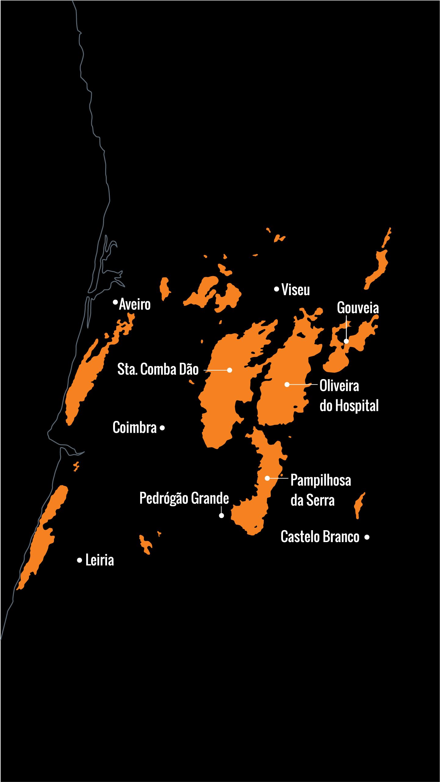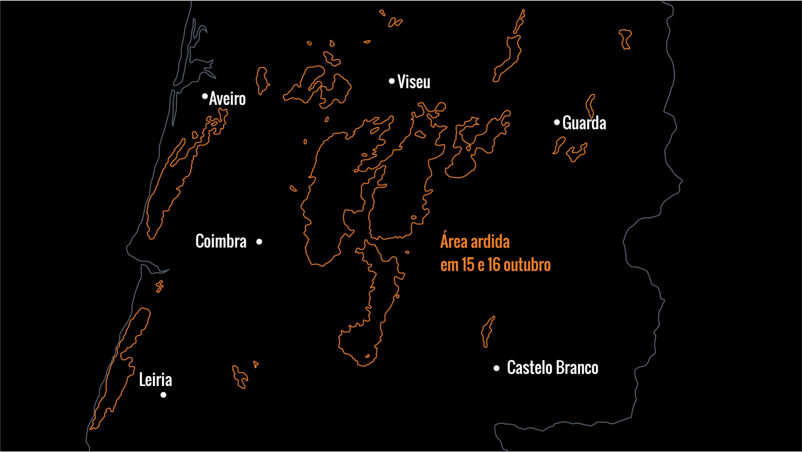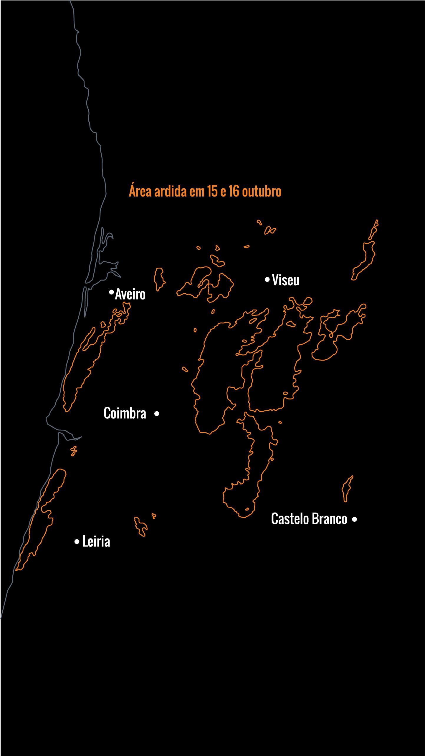 Após a tragédia de Pedrógão não era previsível, exequível, aceitável que outra se seguisse, quase tão mortal, mais extensa em território, mais dura em perdas materiais. O 15 de outubro foi isso tudo. Um acontecimento impossível depois de outro inimaginável. “Foi o pior dia do ano em incêndios”, baptizou-o então a Autoridade Nacional de Proteção Civil, num 2017 que até ali já tinha ultrapassado todos os limites. E só se estava a falar de números de ocorrências - 914 ignições, entre fogachos e incêndios florestais e agrícolas. Ao todo, o fogo que nesse dia queimou 241 mil hectares (78% dos quais floresta) matou 50 pessoas em 40 localidades de 15 concelhos dos distritos de Castelo Branco, de Coimbra, da Guarda e de Viseu. Pedrógão foi mais mortífero mas mais local: os óbitos ocorreram em metade do espaço e em apenas 20 lugares.