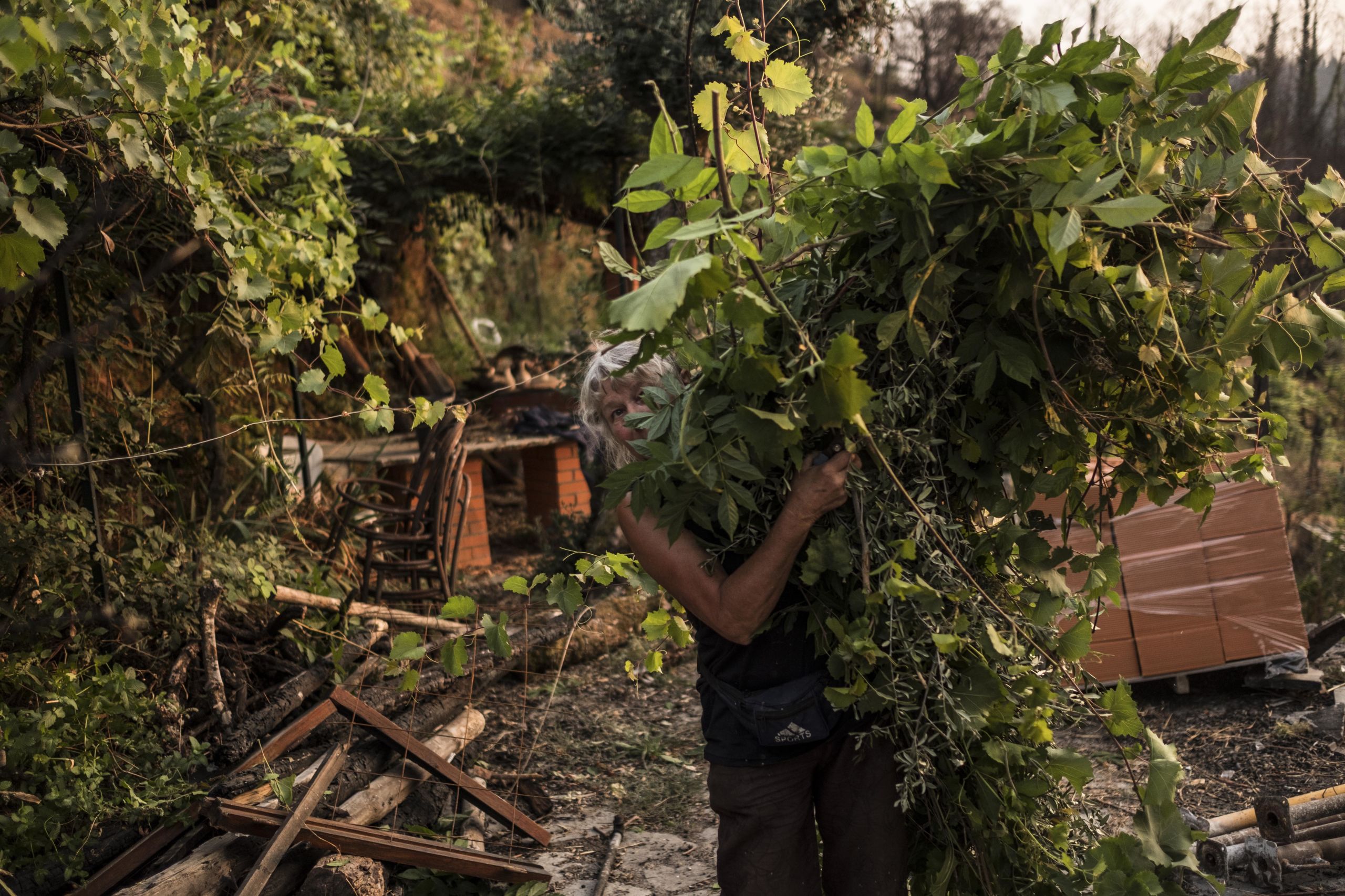 “Há décadas que não comíamos nada que não saísse da quinta. E de repente não temos azeite, legumes, vinho, fruta, e descobrimos que o que se compra no supermercado não presta. Mas, mesmo assim, a mim nunca me passou pela cabeça fazer horta este ano, achava mais importante recuperar a quinta, mas a Marianna precisava”, explica Hélder. “Perdemos cerca de 60 mil euros na quinta. Foi tudo. Máquinas, telhados, ferramentas, tudo. Nunca iríamos conseguir reaver este dinheiro porque era um processo muito difícil, tínhamos de ter um projeto, pagar esse projeto, avançar com o dinheiro e depois reaver parte. Fomos para a ajuda simplificada de cinco mil euros a 100% e fundo perdido. Mas deram-nos €4100 e nunca explicaram para onde foram os 900 em falta. Reclamei e disseram-me que era um processo fechado. Sinto-me mesmo enganado.”