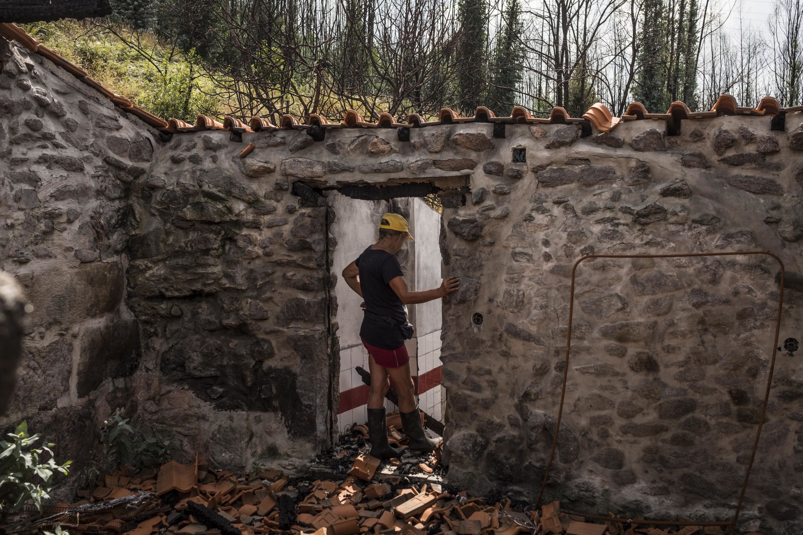 Só ele, aliás, pode atestar a morte. O irmão nunca foi encontrado. Era inicialmente um dos dois desaparecidos da lista de vítimas da Proteção Civil e tornou-se no único de qual não foi recolhido qualquer rasto. Mas é certo que morreu. Américo, 66 anos, estava lá e viu. Explica, à sua maneira, que o fogo chegou por volta das quatro da tarde ao terreno em volta, onde guardavam a lenha para o inverno. Aí travaram a primeira batalha e o incêndio ganhou reduzindo tudo a brasas de lareira. Quando Américo recuou para a casa de dois andares, isolada, de herança familiar, já eram umas sete. Encontrou o irmão no piso de cima a acarretar baldes de água. O vento tinha soprado fagulhas para debaixo das telhas e o teto começava a arder num dos cantos.
