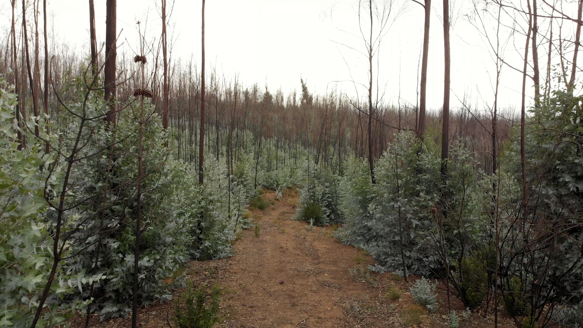 Quanto à floresta, mantém-se maioritariamente negra nos topos e na vertical e verde clara mais junto ao chão. Pelos muitos quilómetros de área ardida palmilhada pelo Expresso se percebe que só uma minoria das árvores foi cortada e os terrenos alvo de replantação. A madeira queimada não vale o seu peso em trabalho, dizem. O que domina é a regeneração natural sem planeamento florestal e há uma espécie claramente dominante e invasora: os eucaliptos viraram praga, mesmo onde ninguém se lembra de os ter alguma vez visto nascer. Se forem arrancados logo basta um puxão de mão, mas os que cresceram ao longo do último ano já são árvore feita, transformando muitas bermas de estrada em densas barreiras verdes. E se há lição a tirar das tragédias de 2017 é que árvores junto a vias é combinação a evitar.