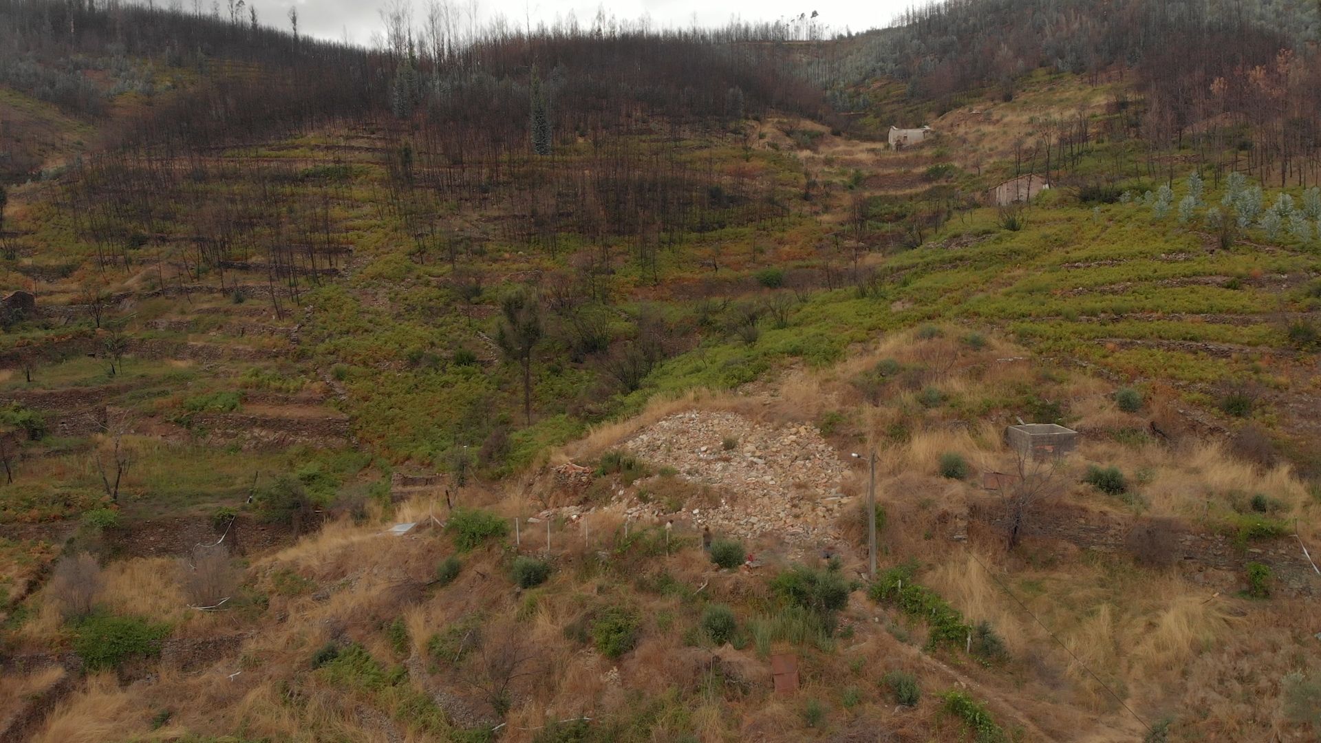 A quinta ardeu toda, todos os cinco hectares de hortas e agricultura biológica, 113 árvores de fruto, 33 castanheiros, 260 oliveiras e o lagar, a vinha e a adega, e os animais. E também a casa dos donos, de pedra, modesta mas feita à sua imagem, de elementos naturais, memórias de viagens e música. E com ela se foi o cenário de vários filmes portugueses (de Ivo Costa, por exemplo) e estrangeiros, e também a Pensão no centro de Avô onde alojavam as equipas. Lá no alto, o refúgio de Andrew também não escapou, perdeu o telhado e todo o piso térreo, mas a cave, onde se escondia para escrever, ficou quase intacta.