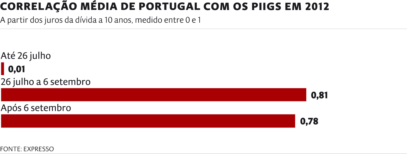 O efeito deste anúncio vê-se facilmente no comportamento dos juros dos países periféricos da zona euro. Até essa altura, além de elevadas e nervosas, as yields a 10 anos de Portugal, Espanha, Grécia, Irlanda e Itália apresentavam comportamentos divergentes entre si ou, no máximo, pouco alinhados. A partir desse momento, passaram a andar de mão dada (ver gráfico). O economista belga Paul de Grauwe, colunista do Expresso, escreveu um artigo no portal Vox em fevereiro onde mostrava que o fator mais importante para a redução dos spreads (diferenciais) face à Alemanha foi o nível de partida.