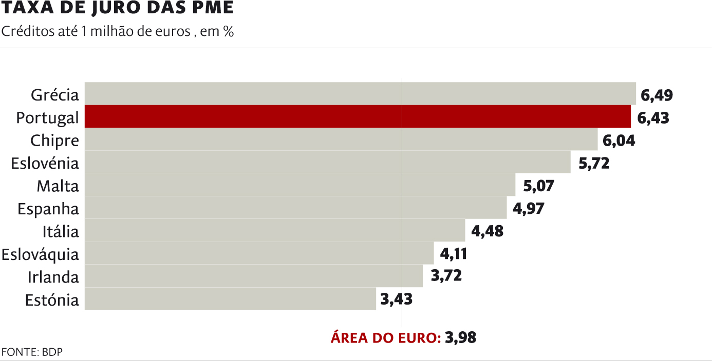 Não só o crédito ao sector não monetário está a cair em Portugal desde 2011, ano em que Draghi tomou as rédeas da política do BCE, como as taxas de juro praticadas pelos bancos portugueses estão entre as mais altas da zona euro. Os últimos dados do Banco de Portugal (BdP) mostram que, por exemplo, umnovo empréstimo às famílias para compra de casa teve uma taxa média de 3,26% em agosto, o que só foi ultrapassado por Chipre (5,33%), Eslováquia (3,96%), Grécia (3,4%) e Itália (3,37%). A média na zona euro foi de 2,8%. Já no crédito às empresas até ¤1 milhão, ou seja vocacionado para PME, a taxa portuguesa é de 6,43% e só fica atrás da Grécia (6,49%), enquanto a média nos países da moeda única é de 3,72%.