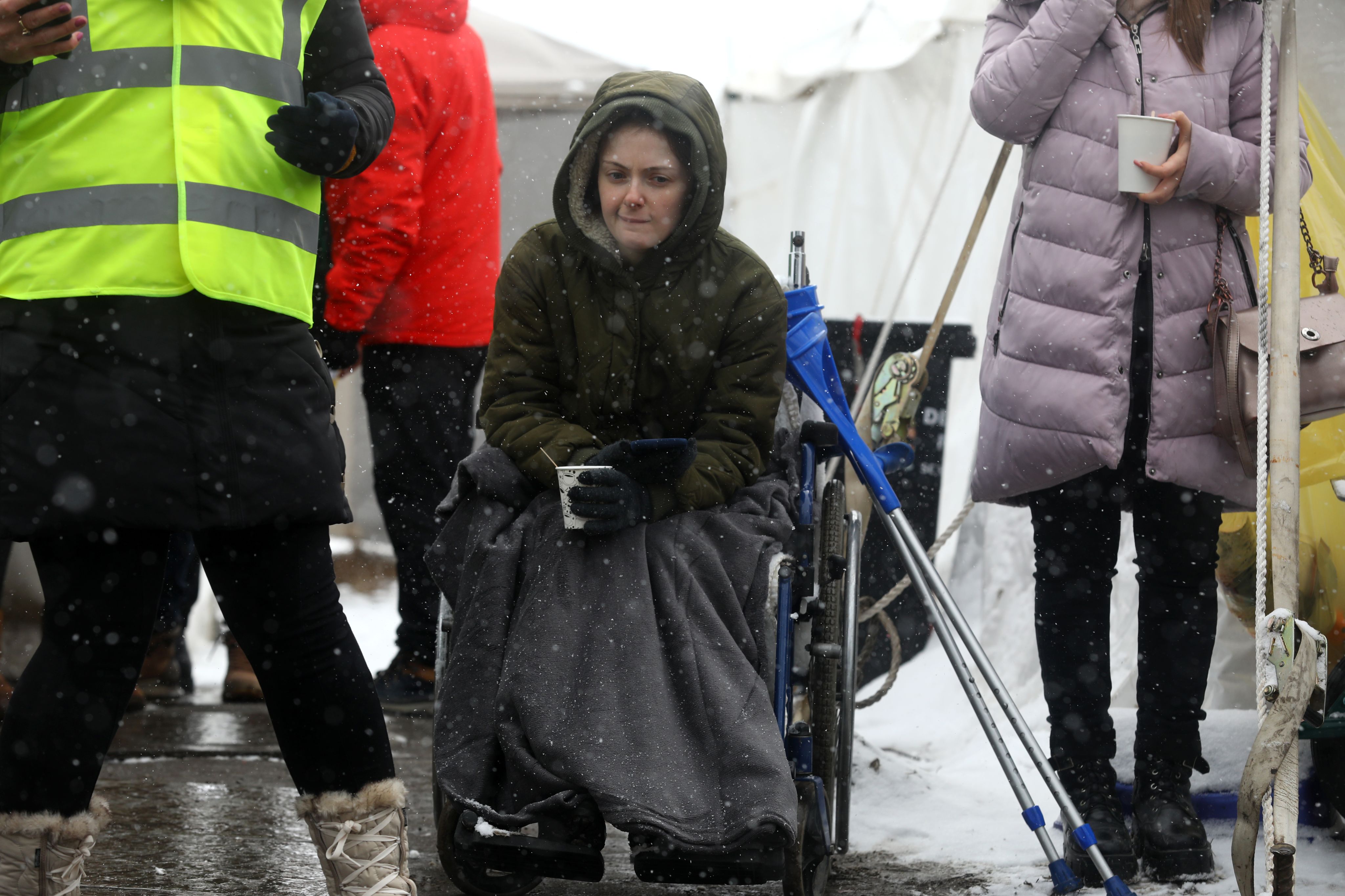 À beira da estrada que leva até à fronteira há quem dê informação, quem ofereça transporte, quem sirva chá e sopas quentes; há bancas com roupas, atendimento médico e até um veterinário. Assim que alguém chega a pé há sempre um — por vezes muitos mais — voluntários de braços estendidos com algo para dar algo. Não há criança que entre em Siret que não leve um chocolate.