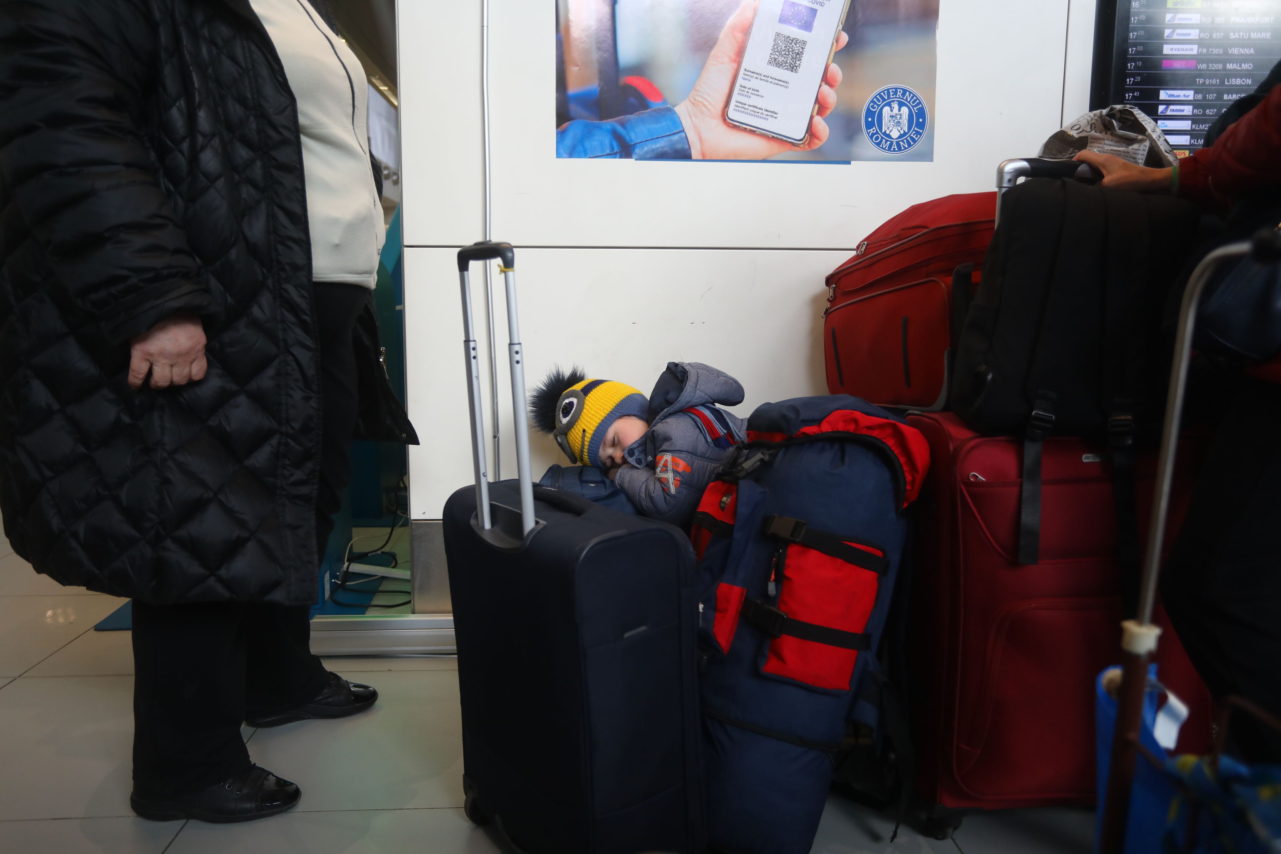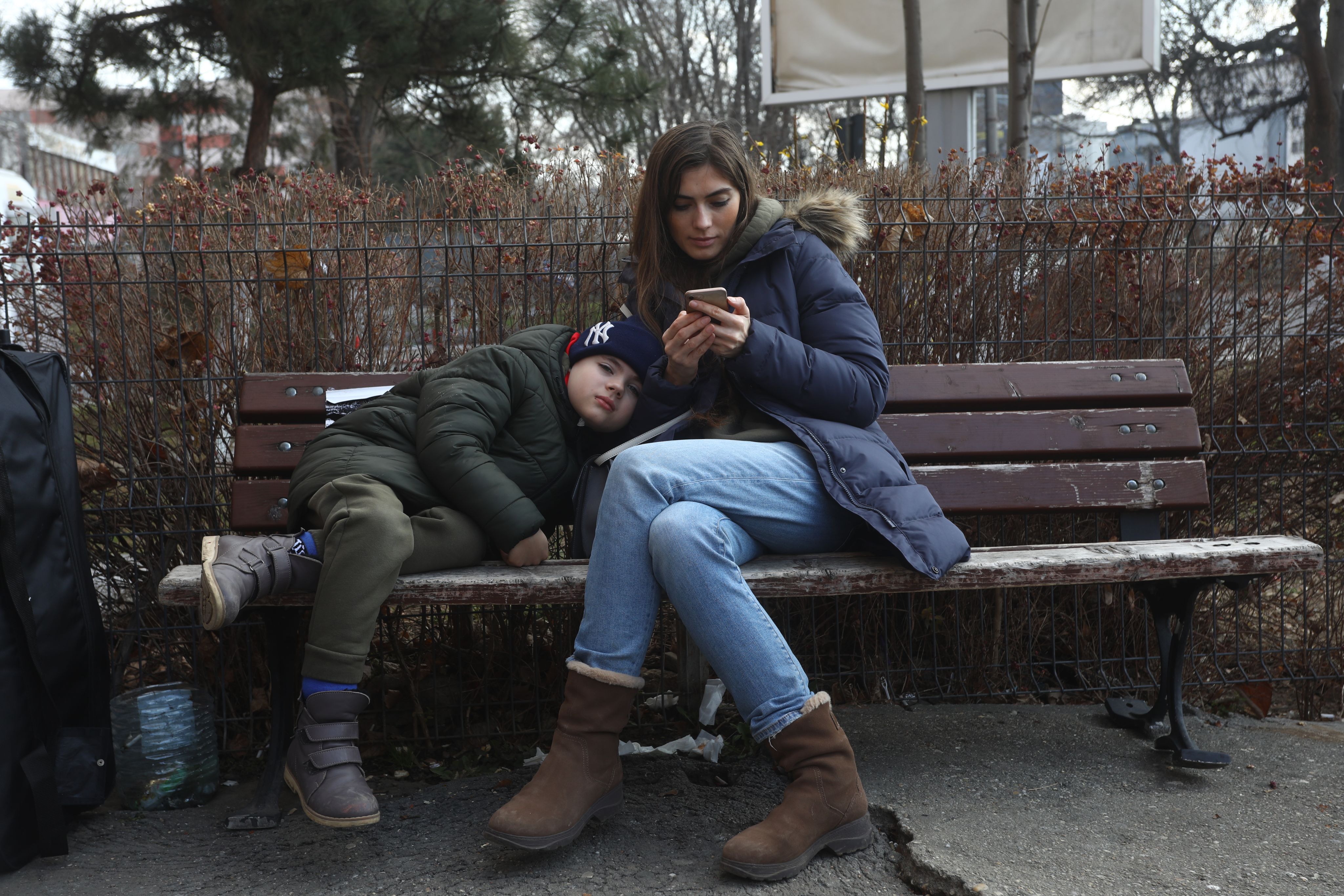 As mulheres trazem quase todas o dedo anelar adornado, mas quem lhes deu o anel ficou para trás. Valériya Melnikova, 36 anos, está com o filho Ivan, cinco anos, duas malas e a pasta com o computador de trabalho. Não têm mais nada nem ninguém. Chegou à residência do Instituto Politécnico de Bucareste já de noite, bem depois da hora de jantar.