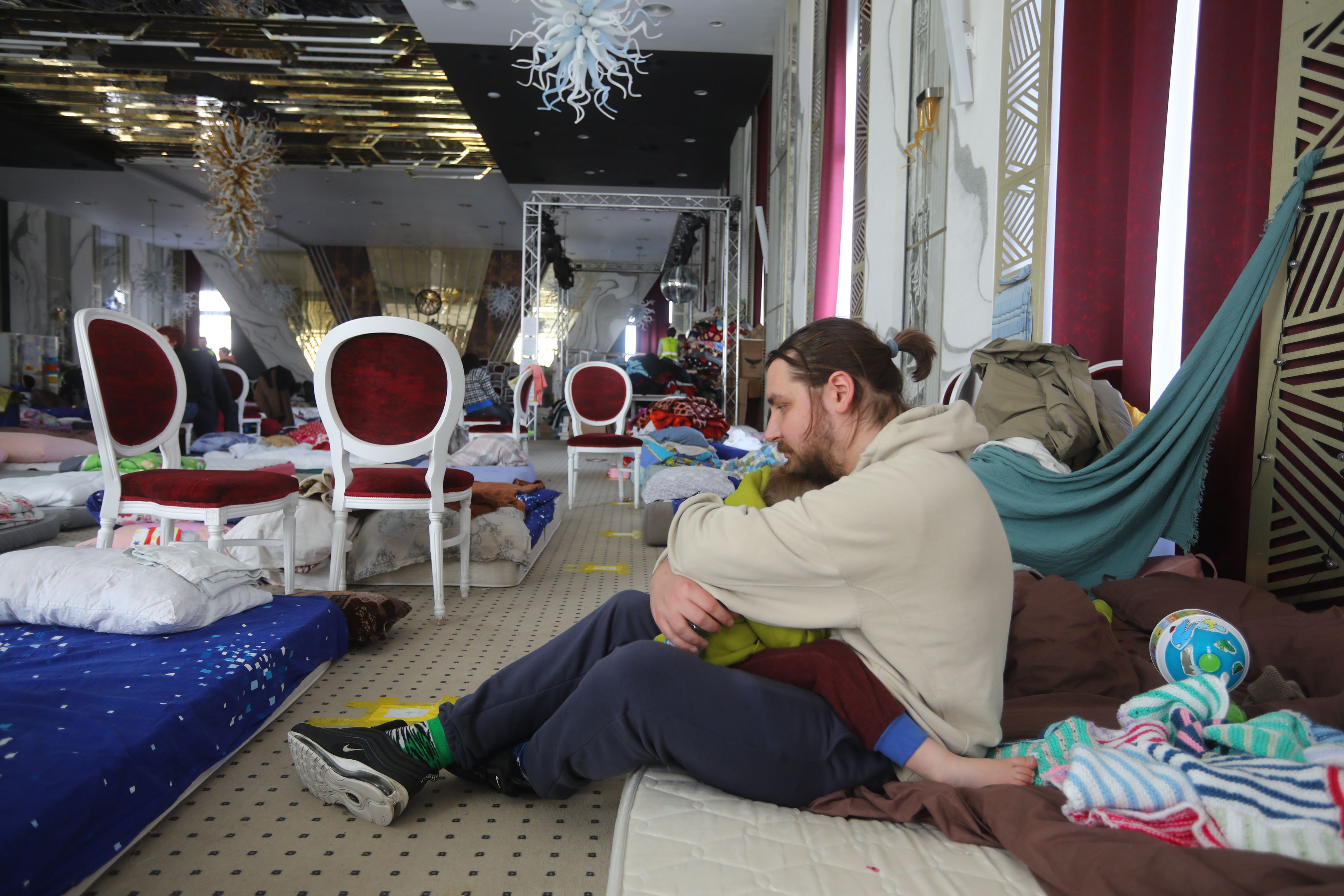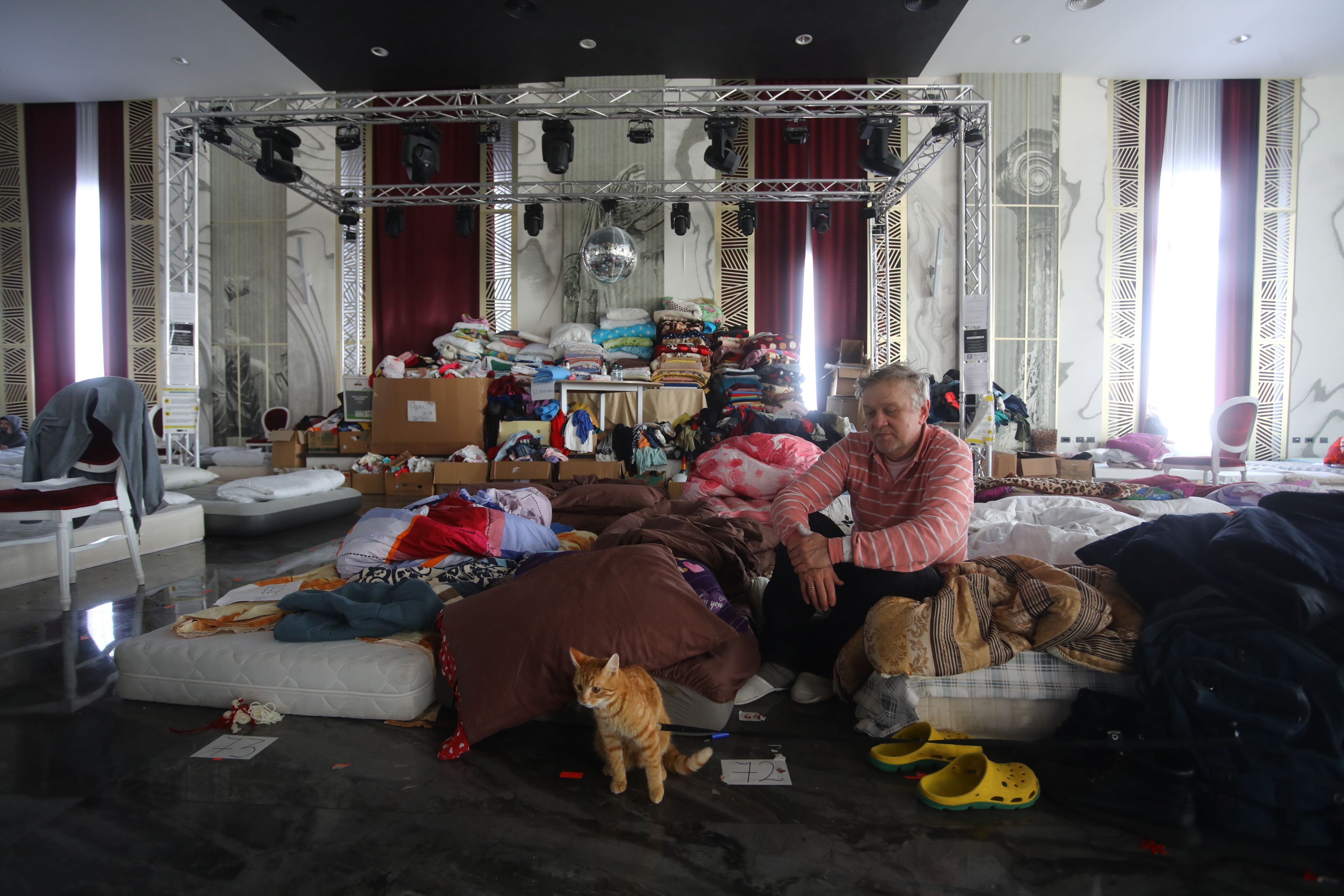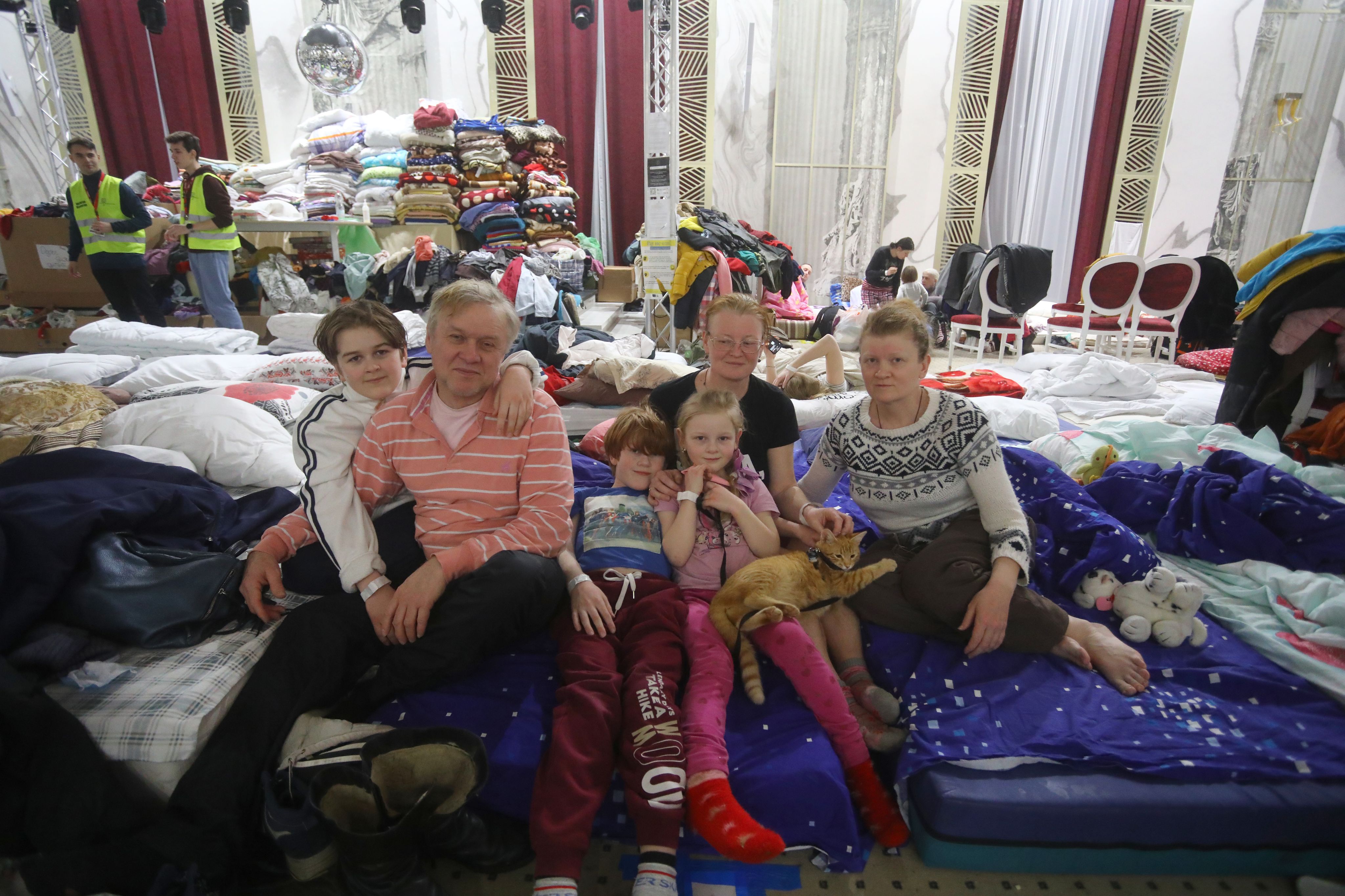 Igor Korolev chegou há umas horas. Está sentado num dos colchões no centro da sala. Tem um gato laranja preso pela trela e um dedo ferido. A filha corre de um lado para o outro e brinca com as outras crianças que ali estão. Falta-lhe a mulher, a cunhada e os dois filhos. Foram ao supermercado. “Voltam mais logo”, diz o homem de 58 anos que tem na sua história algo que o “envergonha”.