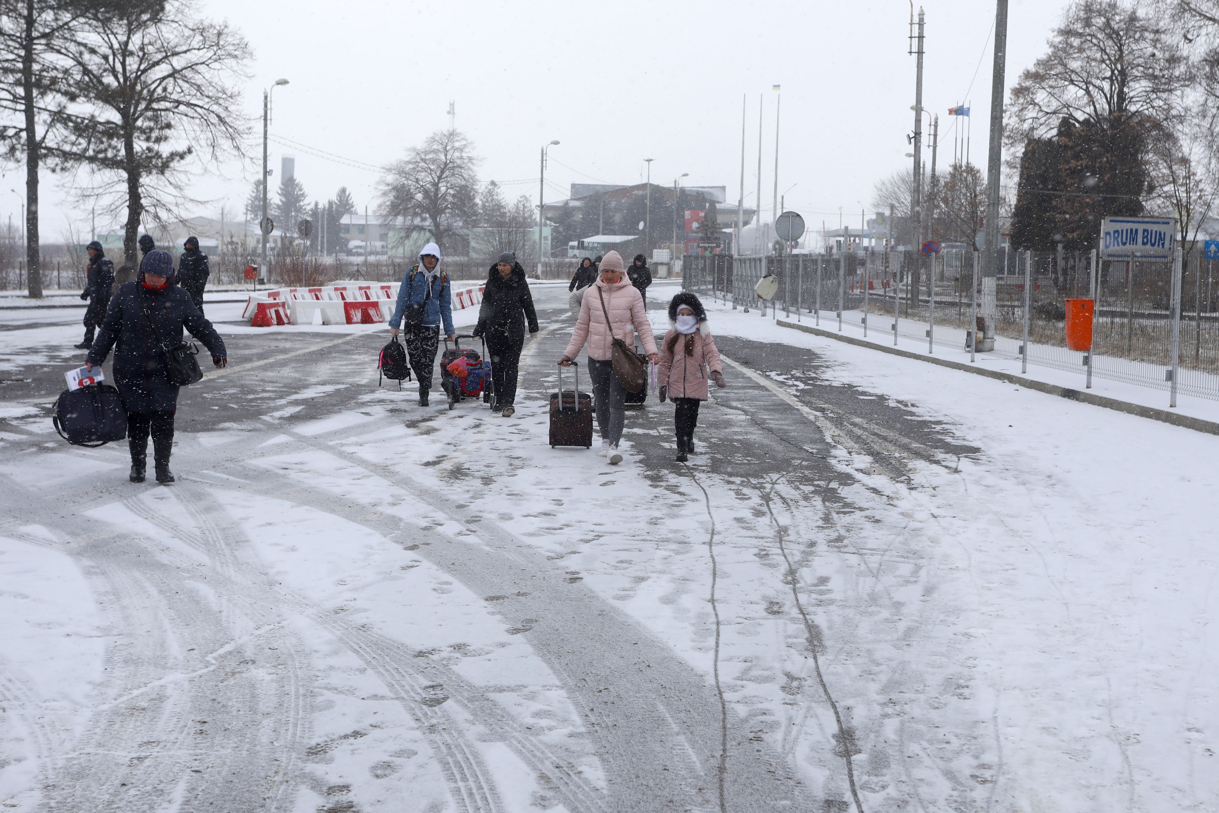 Entre a terra que não é de ninguém o silêncio é apenas cortado pelo crocitar dos corvos negros e pelo contínuo rodar dos trolleys no alcatrão. São puxados por mulheres que carregam filhos no colo ou que os trazem pelas mãos. Outras empurram as mães nas cadeiras de rodas ou amparam-nas pelo braço até entrarem na cidade de Siret. Há mais de duas semanas que a travessia do posto fronteiriço tem apenas um sentido: fugir da Ucrânia para procurar segurança na Roménia.