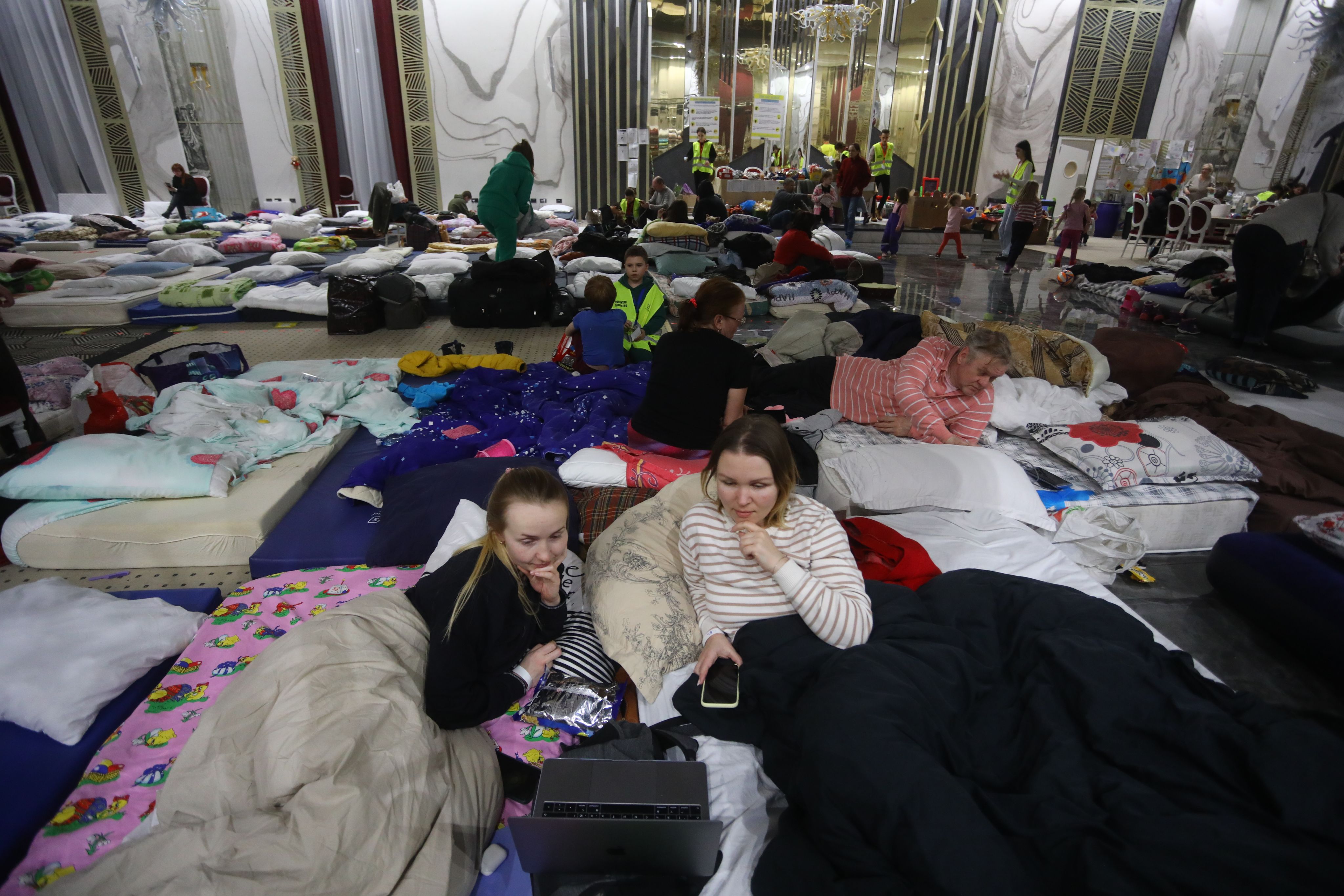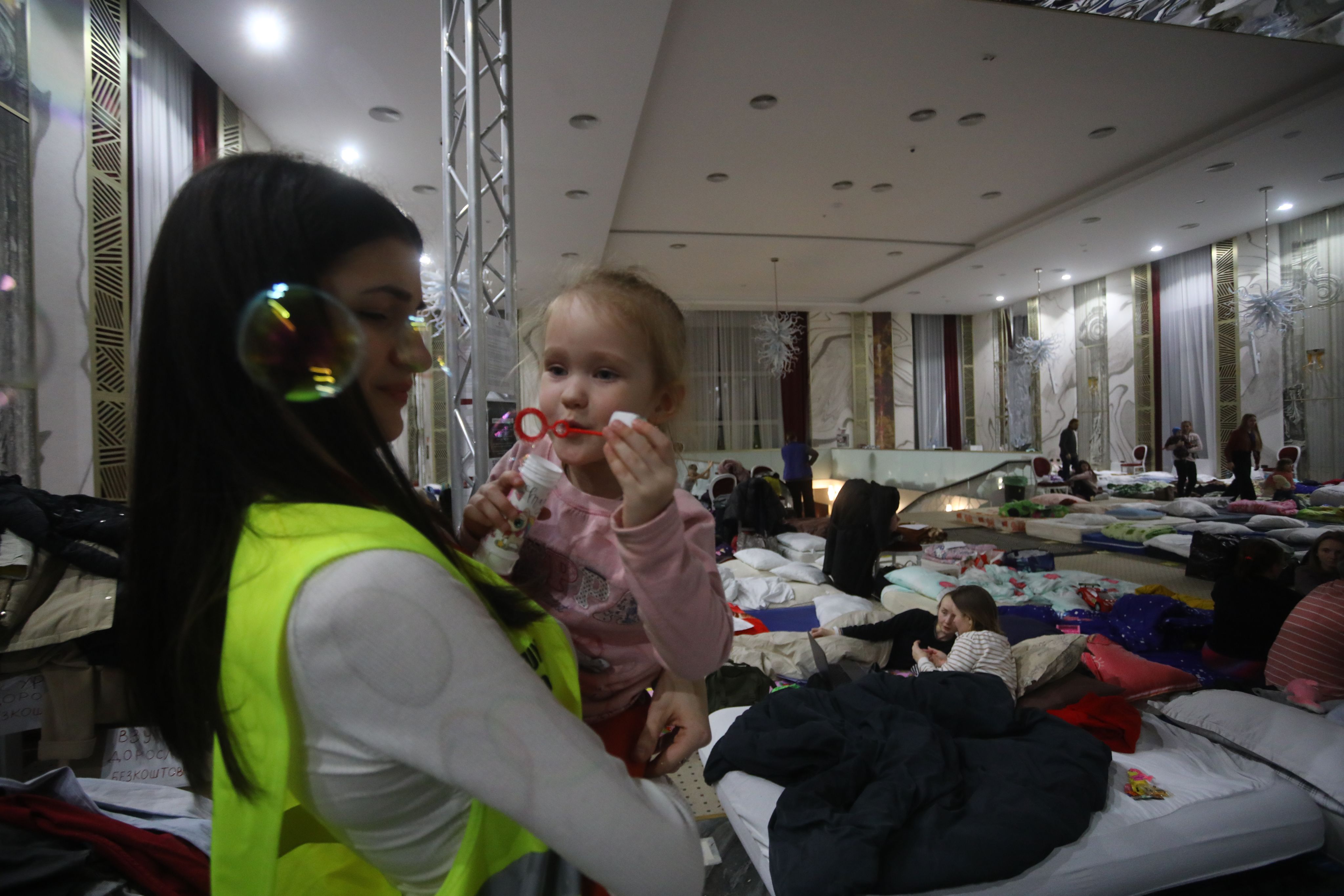 “Conseguimos marcar duas noites em dois quartos num hotel aqui perto. Temos algum dinheiro para nos mantermos nos próximos tempos”, garante Aleksander. “Estes centros são um ótimo apoio para o imediato, mas também quem não pode pagar um hotel e não tem onde ficar.” Vlada arruma as coisas dos filhos, preparam-se para vagar os seus lugares e dar a vez aos próximos que precisem.