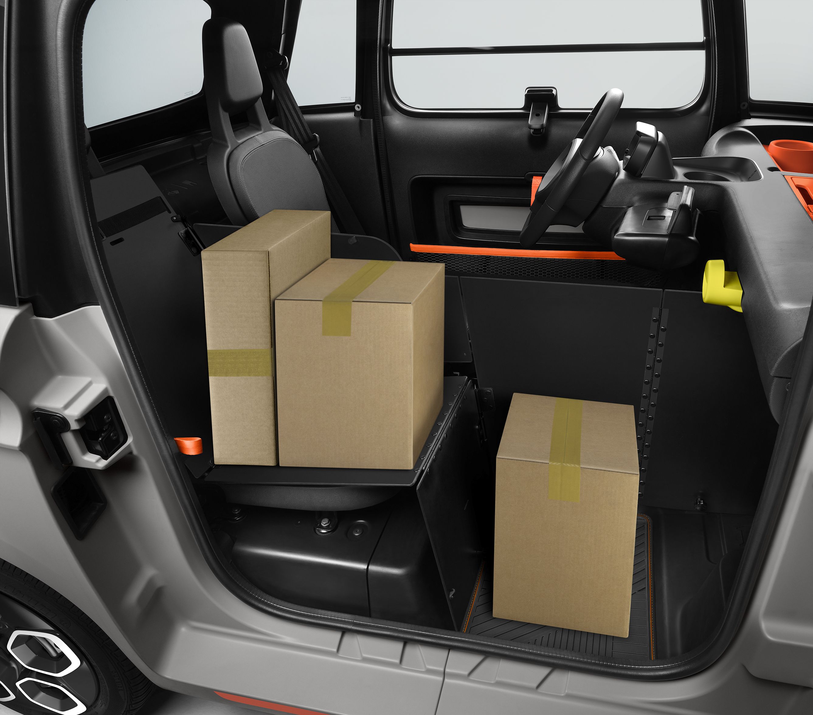 No capítulo da versatilidade, o Ami responde a diversas necessidades, inclusive as de carácter mais profissional. No mês passado, a Citroën propôs o My Cargo, um módulo inteligente proposto como acessório que permite ao Ami conservar um espaço de carga prático e funcional, no lugar do banco do passageiro. E não prescinde da possibilidade de transportar duas pessoas.