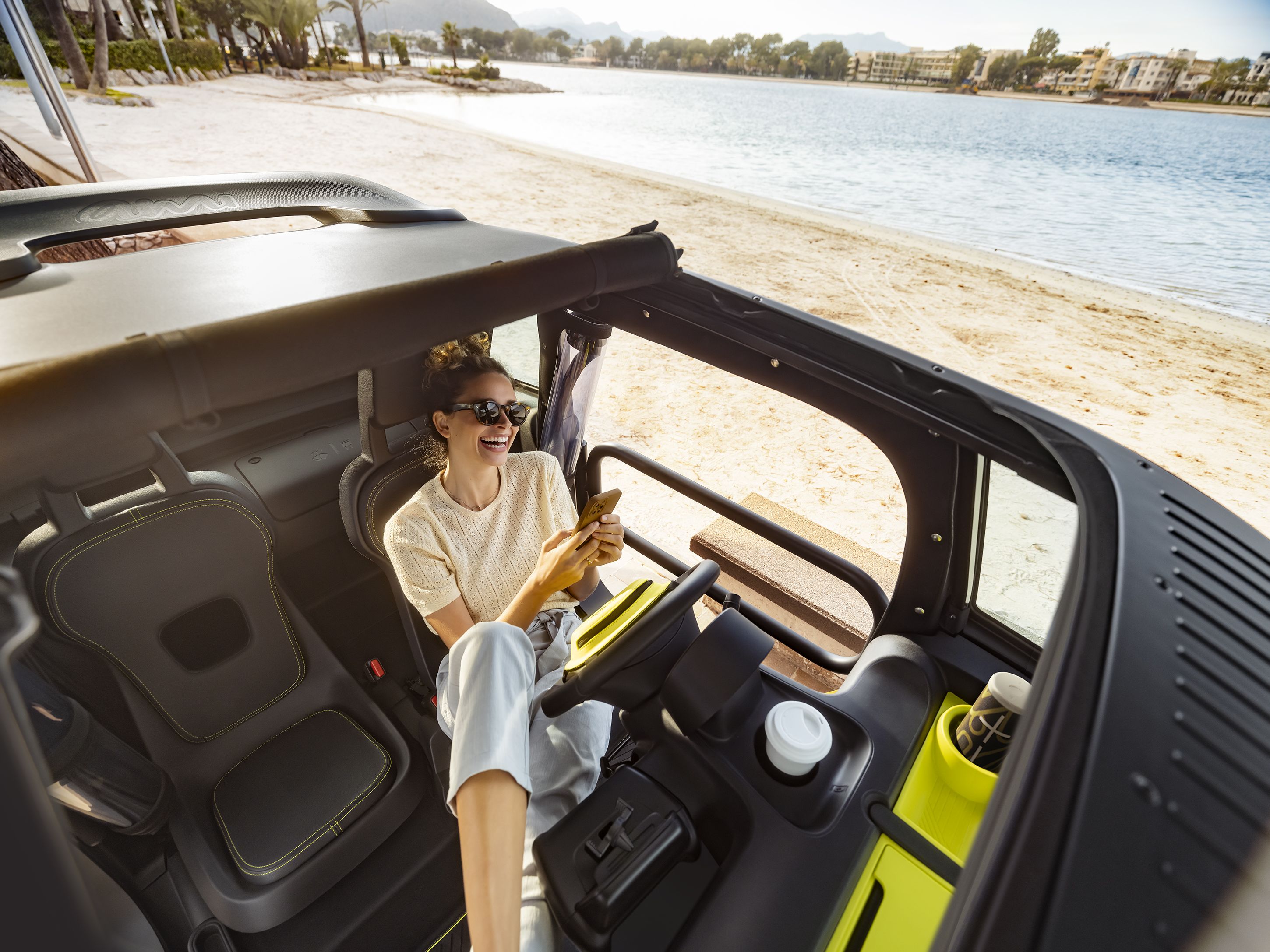 Já no interior é possível encontrar uma série de pormenores pensados para nos facilitar a vida, como um suporte para o smartphone, redes, um gancho para sacos e vários compartimentos de arrumação. Entre as soluções tech, estão a caixa de conetividade Data@Ami, o interface My Ami Play e o botão inteligente Citroën Switch colocado no volante, para que o condutor possa manter sempre os olhos na estrada.
