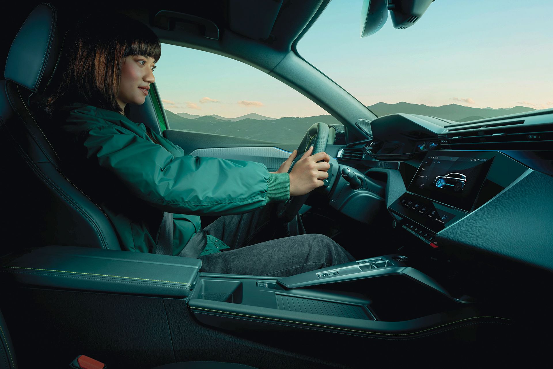 O posto de condução da Peugeot continua a marcar pontos e no 308 o inovador i-Cockpit – que assinalou 10 anos em 2023 – foi redefinido com a introdução de novos padrões aos mais diversos níveis. Com o sistema i-Connect Advanced o condutor pode facilmente aceder a diversas funções (ar condicionado, multimédia e navegação, por exemplo) através de um comando de voz e o novo sistema de infotainment, para além de permitir a definição de preferências a nível de imagem, ambiente e configurações, integra inteligentemente o smartphone, permitindo, através do serviço E-Remote Control da app MyPeugeot, iniciar remotamente o aquecimento ou o ar condicionado, bem como consultar e gerir a autonomia em tempo real, podendo inclusive, se estiver ligado a um ponto de carregamento, controlar esse carregamento à distância.