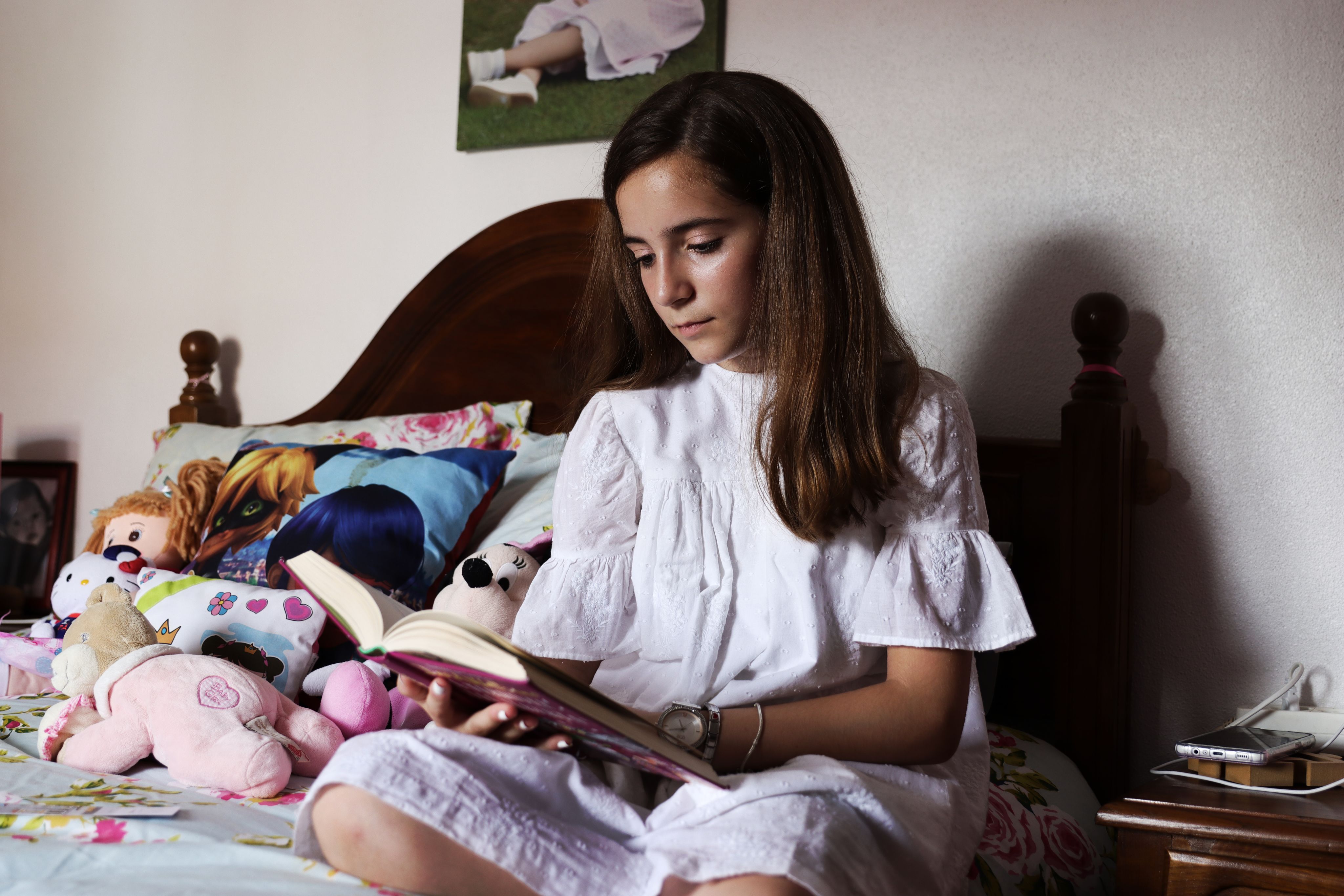 No quarto cor de rosa, onde assomam na porta do roupeiro os desenhos dos tempos livres, a menina confessa-se “tímida, despachada e arrumada”. E talvez em todas as características que escolheu nomear haja um pedaço de causalidade com o facto de ser filha única da terra. Por nunca ter tido com quem brincar, cedo se habituou a usar os peluches para os diálogos, mesmo sentindo “tristeza por fingir que fala com alguém”.