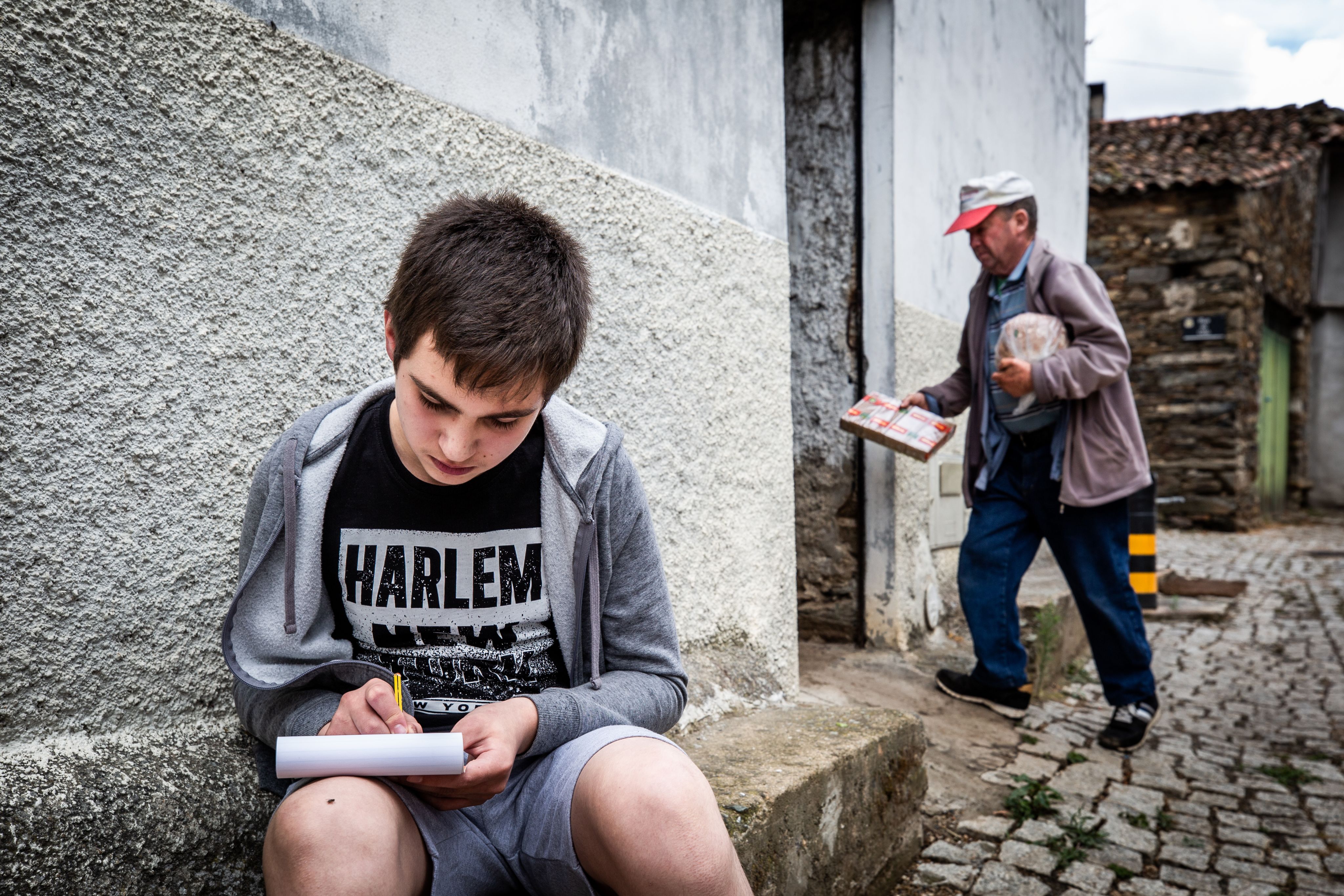 Por vezes uma folha branca de papel é o suficiente para lhe ocupar as horas. Não poucas vezes lhe vêm à cabeça “paisagens grandes, com muitas montanhas e campos de milho” que gosta de desenhar. As ovelhas a que tira o leite, para ajudar os pais, e o gato Simba também têm o hábito de lhe atiçar o lápis. Faz quase tudo sempre sozinho.