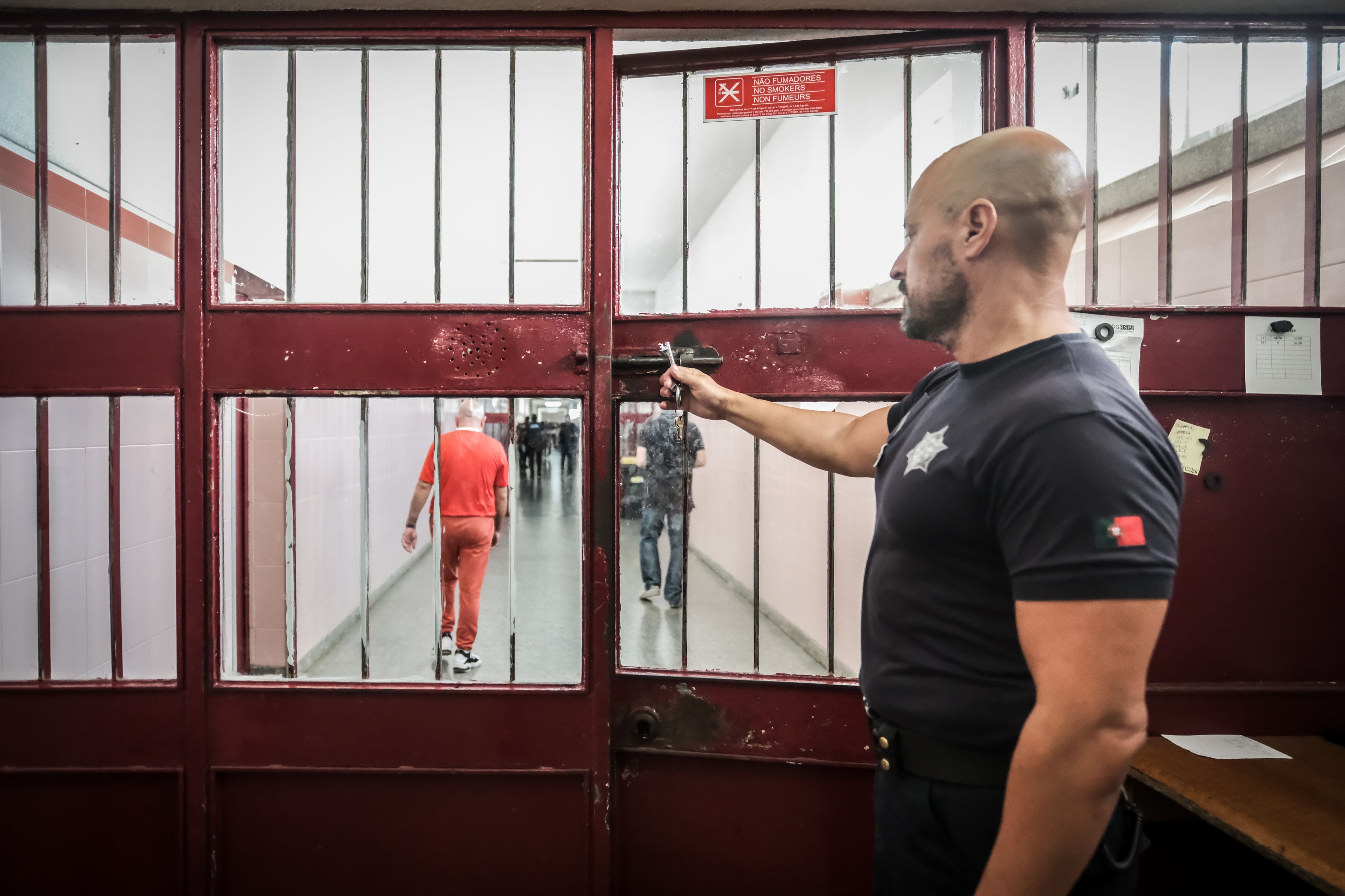 Ao entrar na prisão de Custóias, batem certo as referências dos filmes. Uma porta branca e robusta, com aparência de pesar toneladas, destapa um corredor fino, com um raio X ao fundo, ao estilo dos aeroportos. Do lado direito, um guiché onde repousam as chaves, imensas, e os documentos de identificação dos visitantes. Alguns guardas largam a coreografia dos afazeres para nos instruir: telemóveis, computadores e demais aparelhos eletrónicos não são autorizados a entrar. As mochilas também ficam de fora: tudo encaixotado em cacifos.
