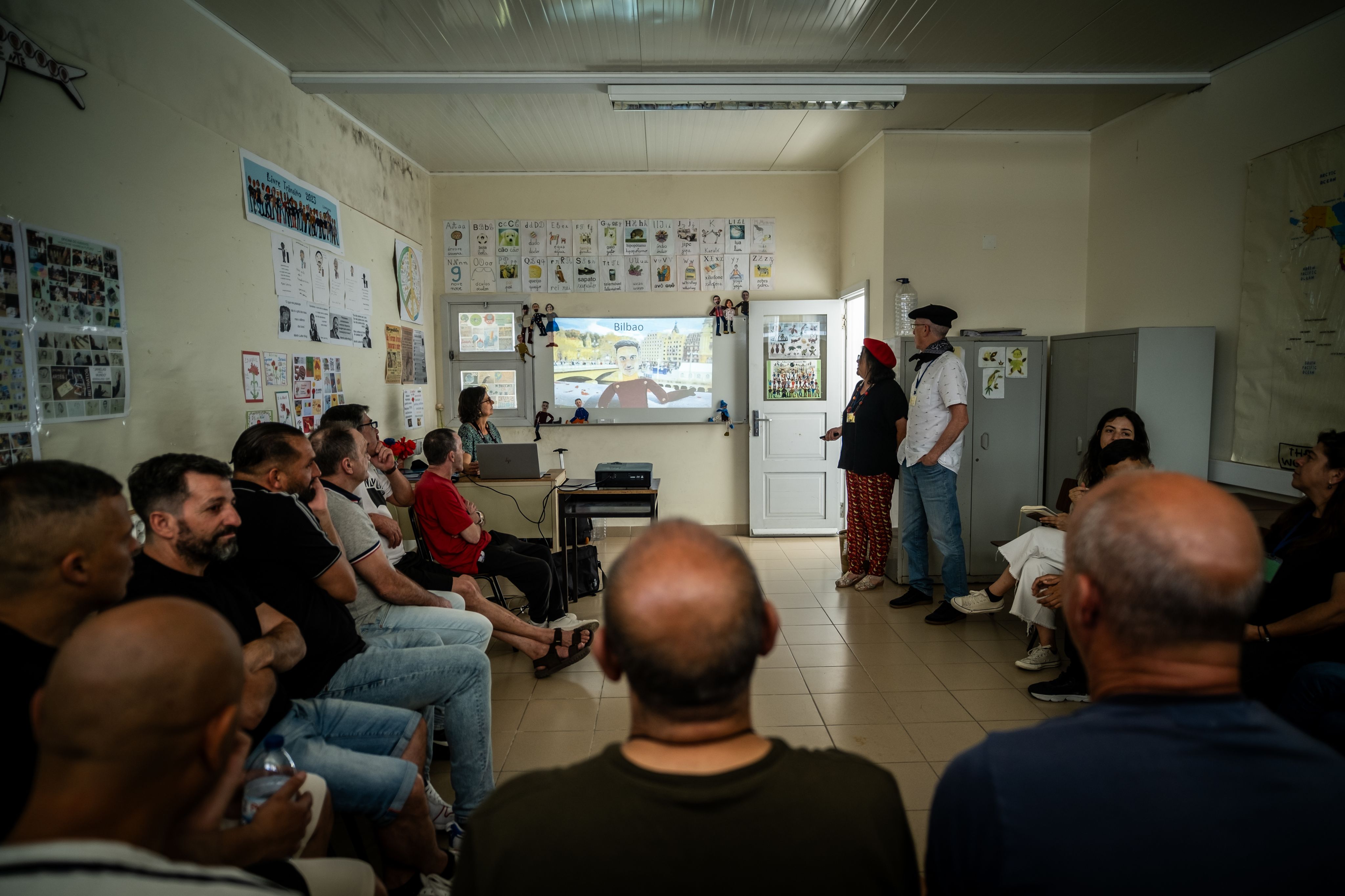 O dia em que Alberta Rocha e César Jesus foram apresentar à escola da prisão de Custóias as mais recentes viagens que fizeram com libertos. Rui Oliveira