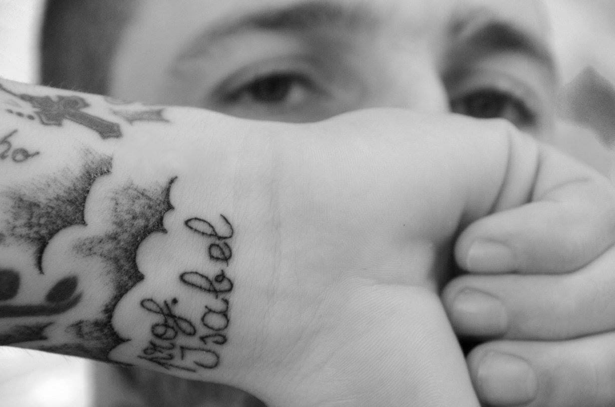 Quando se sentou a falar connosco, já não se interessava pelas aulas. À medida que a libertação se aproxima, a capacidade para se concentrar falha. “A minha cabeça só vê rua, rua, rua.” Mas, ainda assim, diz-se grato pela dedicação de Isabel, levantando levemente o braço para que fosse visível como lhe dedicou a pele. “Prof. Isabel” está lá tatuado, a tinta azul de uma caneta, gravada com uma agulha improvisada de uma mola de isqueiro — como se fazem as tatuagens na prisão.