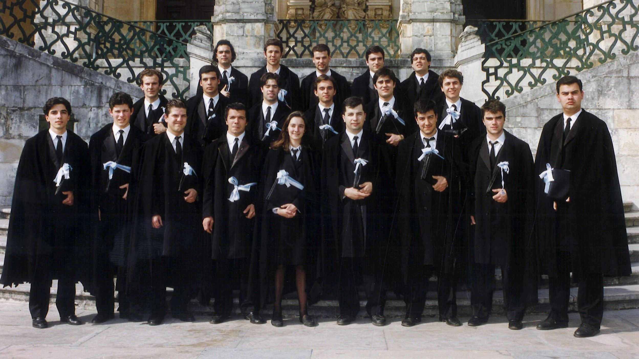 Cristina Roque com parte da sua turma de licenciatura em Engenharia Mecânica na Universidade de Coimbra, 1998