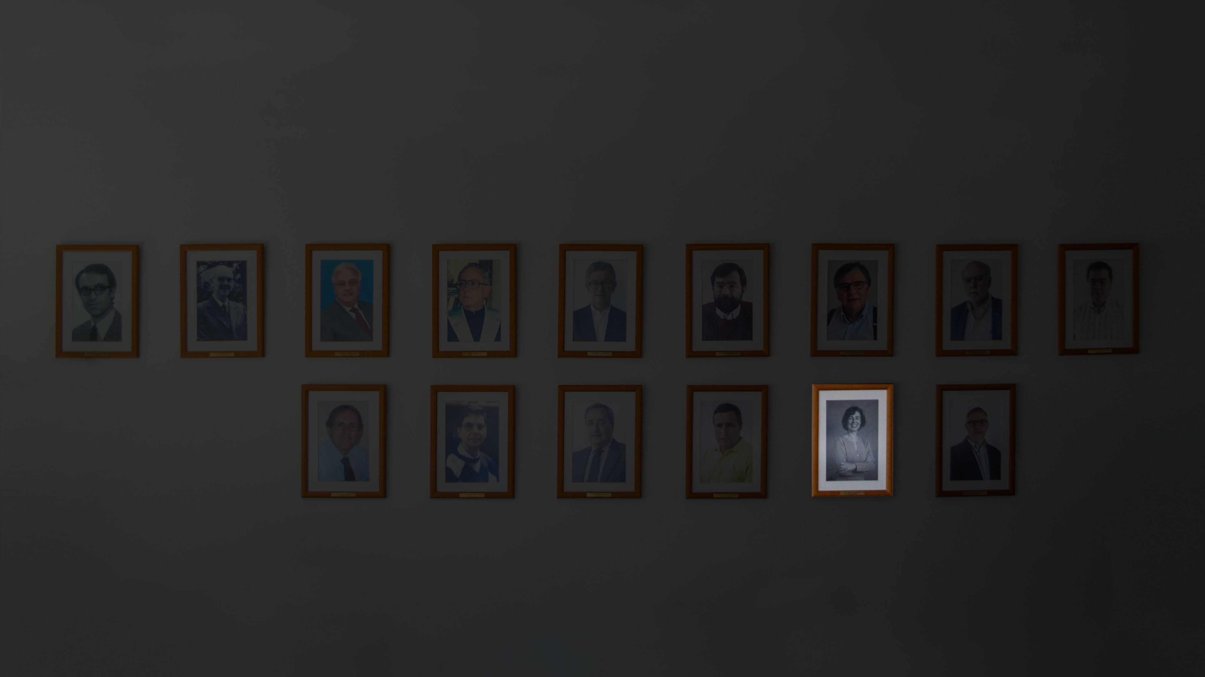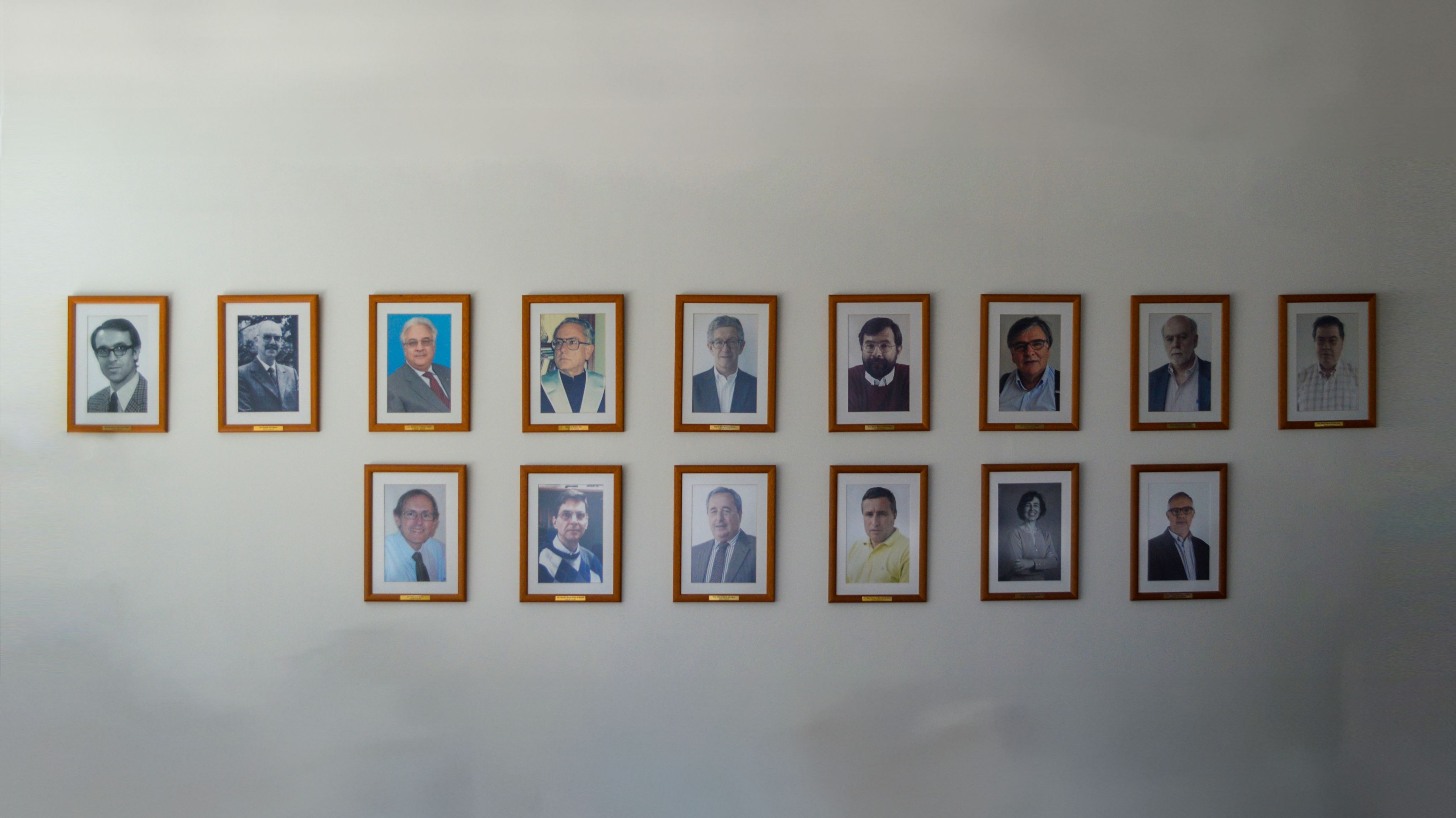 A parede coberta de fotografias de homens na sala de reuniões ilustra o rácio de mulheres entre os docentes do Técnico e espelha a realidade histórica nas engenharias mecânica, informática e eletrotécnica, as três áreas com menor representação feminina.