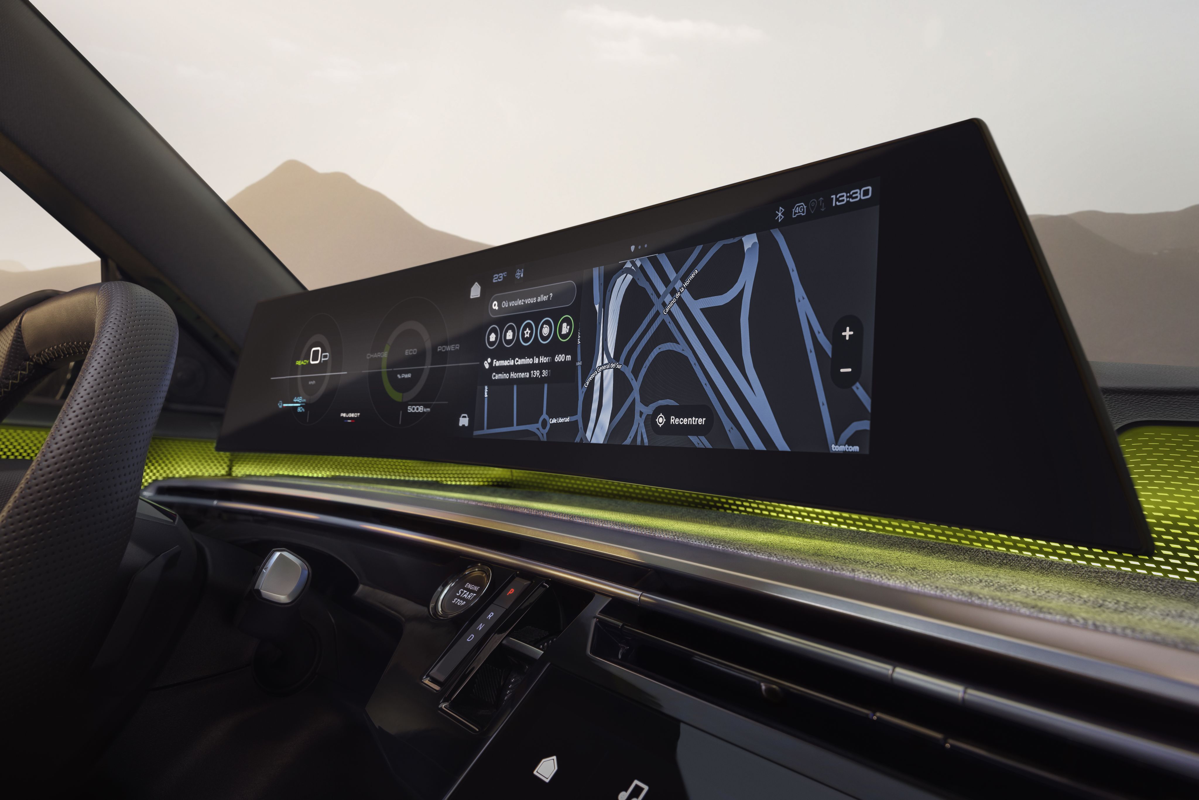 Se tivéssemos de escolher apenas uma referência num interior que tem muito mais do que uma virtude essa seria sem dúvida o ecrã panorâmico curvo com um único painel de 21'' de alta-definição que se estende do lado esquerdo do tablier até à consola central. A Peugeot já tinha conseguido surpreender com o i-Cockpit e agora, no novo 5008 o “head-up display” e o grande ecrã tátil central – dois dos três elementos do i-Cockpit – surgem integrados num autêntico “statement tecnológico” que, graças a uma iluminação ambiente em LED, parece inclusive “flutuar” sobre o tablier.