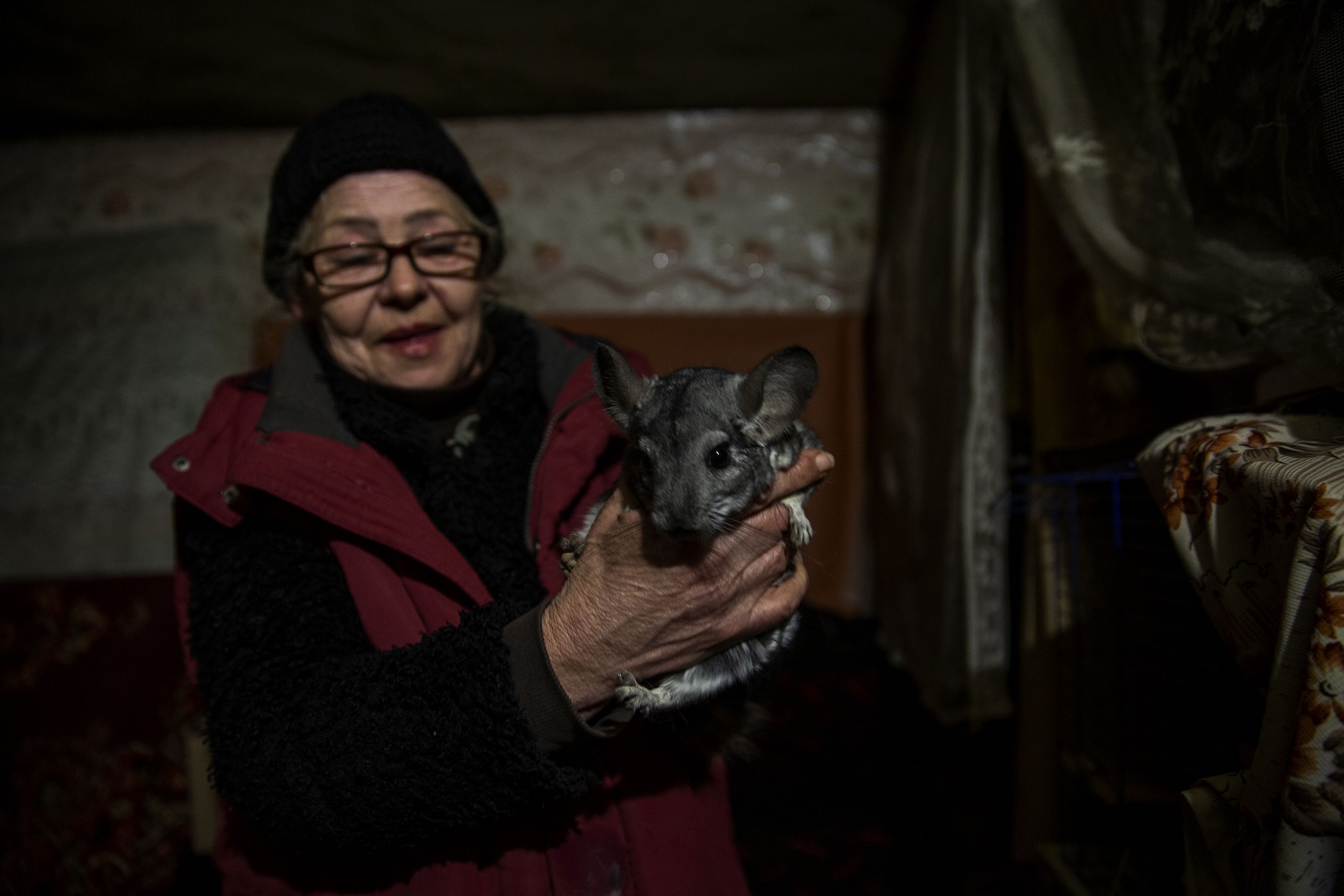 Noutra cave, outra senhora Lyubov faz festas à sua chinchila. Migrou para o subsolo também por causa do animal. Rodopiava na sua jaula, não comia, perdeu parte do pelo, tudo culpa do stresse dos constantes bombardeamentos. Nos tubos onde a água não voltou a correr pendurou uma bandeira amarela: “Amo-te Ucrânia”. Vem do tempo da Revolução Laranja, de 2004, quando milhares se revoltaram contra a vitória duvidosa de Viktor Yanukovych, próximo de Moscovo, nas presidenciais. O verdadeiro vencedor fora o pró-ocidental Viktor Yushchenko, garantiam os manifestantes, entre eles Lyubov Surzhan, de 66 anos.