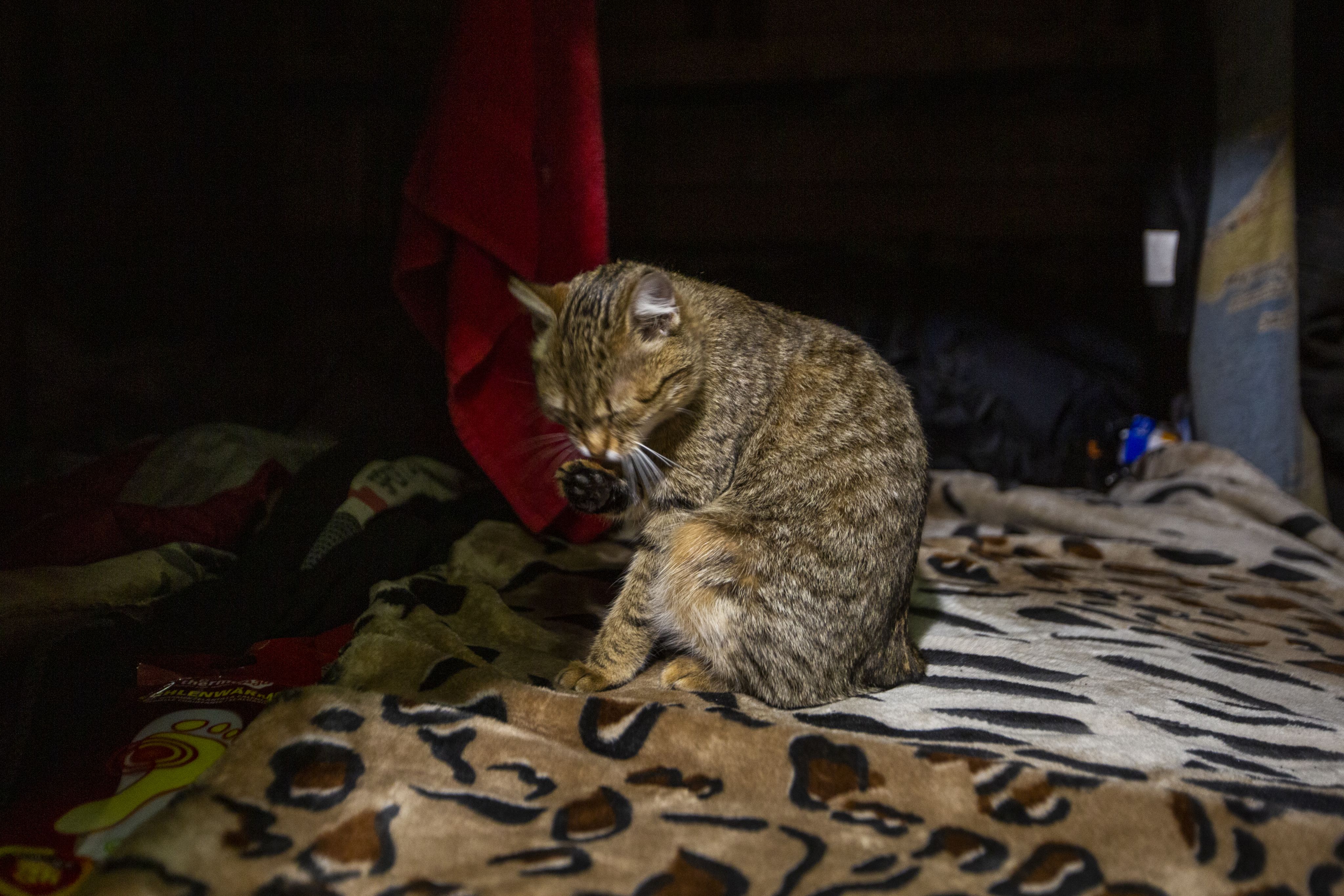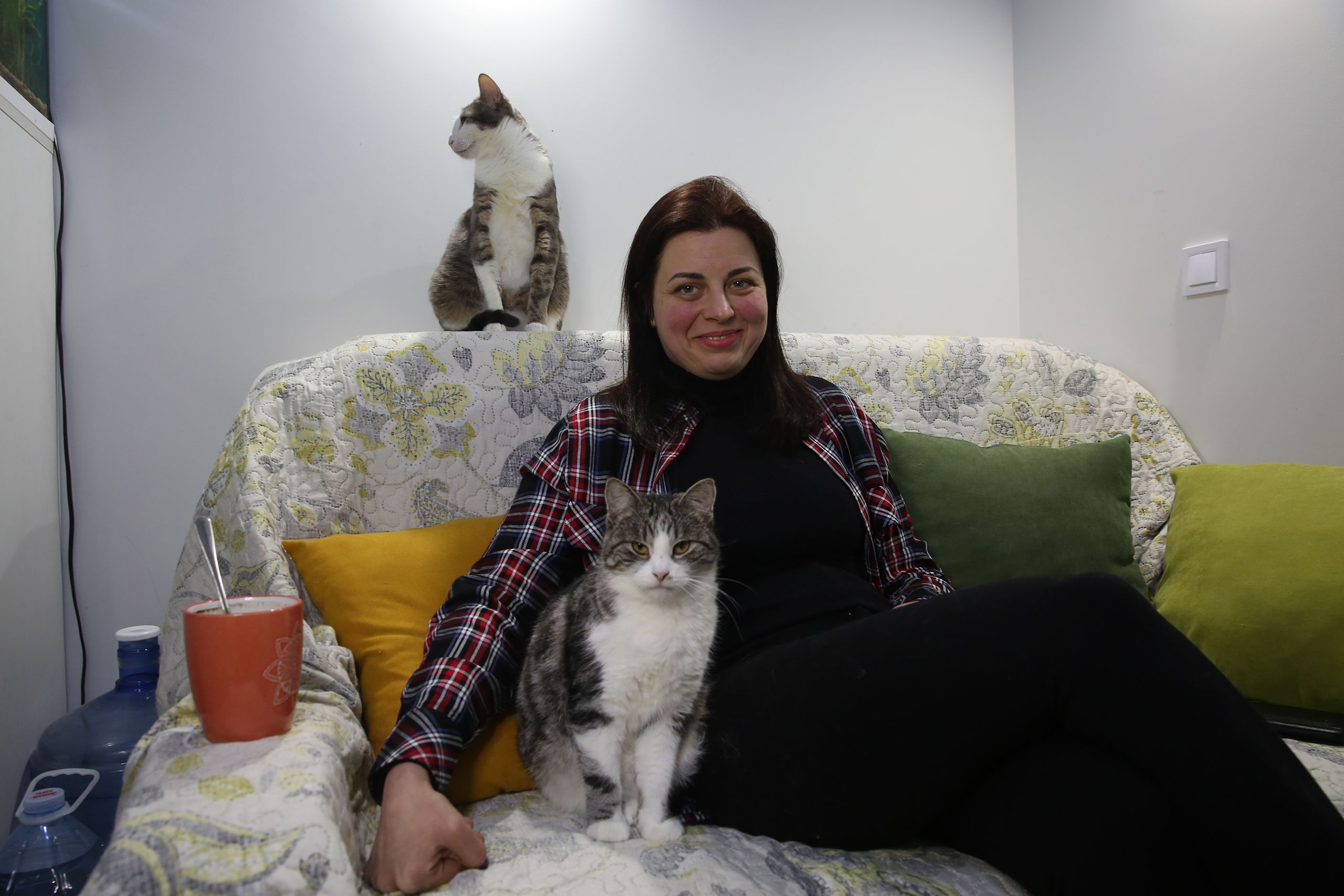 Já de noite, no caminho de Bucha para Kiev, paramos em casa de Diana Furzikova, 34 anos. Vive numa gigante torre de apartamentos perto do centro, mas a casa não é sua. “Não perdi as coisas mais preciosas, perdi o resto”, começa por dizer, enquanto vai fazendo festas aos três gatos feridos, resgatados de localidades na linha da frente, que adotou. O marido, Andriy, está em Bakhmut. A filha está com ela. Tinham montado um negócio de puxadores para janelas e maçanetas, feitos à mão. Por fim iam de férias.