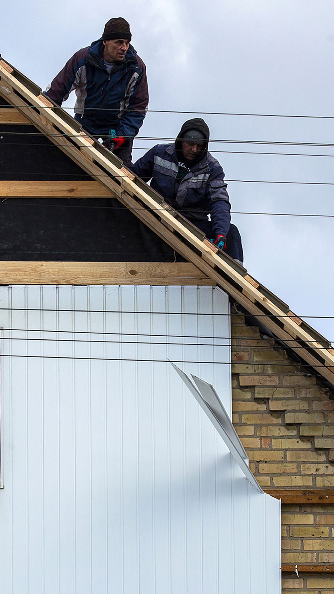O ar está gelado, é difícil escrever a um ritmo que acompanhe o que nos contam. Os dedos não reagem suficientemente rápido. Os telemóveis deixam de responder ao tato. No entanto, os homens não param. De todo o lado chega o som de martelos, serrotes, lixas elétricas, máquinas de soldar, berbequins, cimento a rodar nas betoneiras. Quase todas as casas têm pilhas de vigas de madeira fresca diante dos portões. Metade do telhado negro, partido, ardido, outra metade acaba de nascer. Os trabalhadores, que, na grande maioria, reconstruem casas que não são suas, equilibram-se em cima dos telhados íngremes a martelar a nova estrutura. Não sabem o que se passou, não podem falar por quem aqui viveu.
