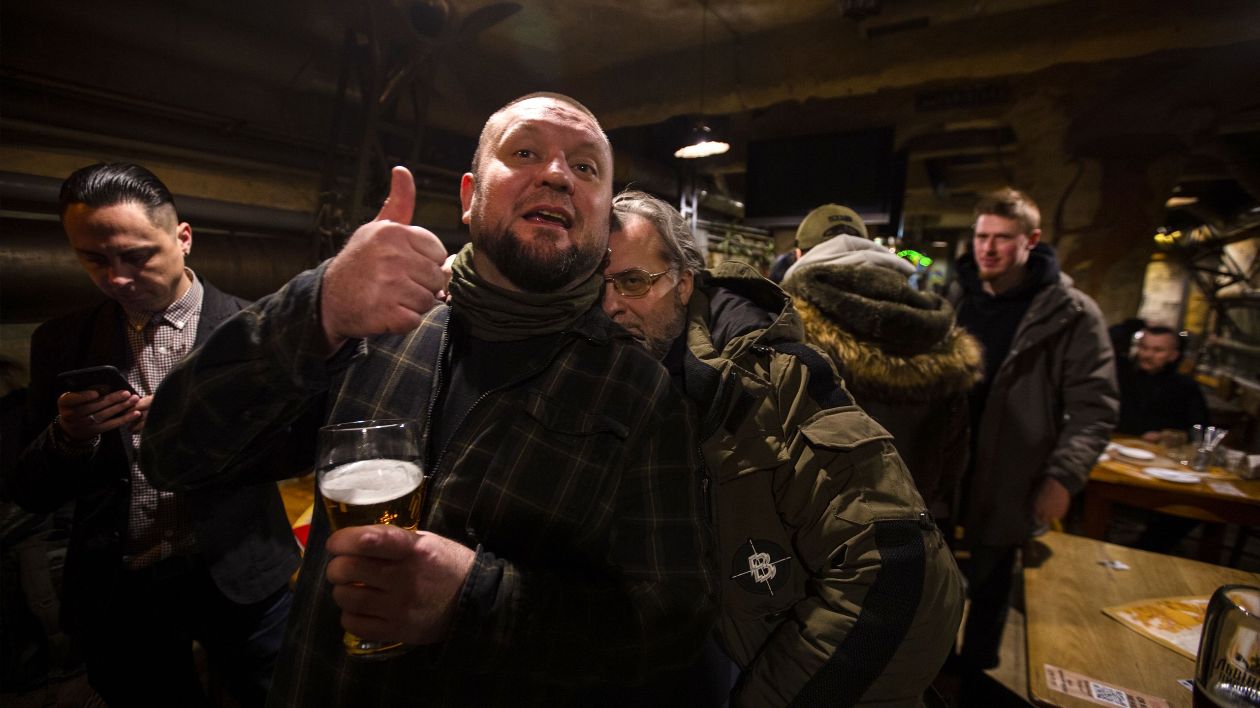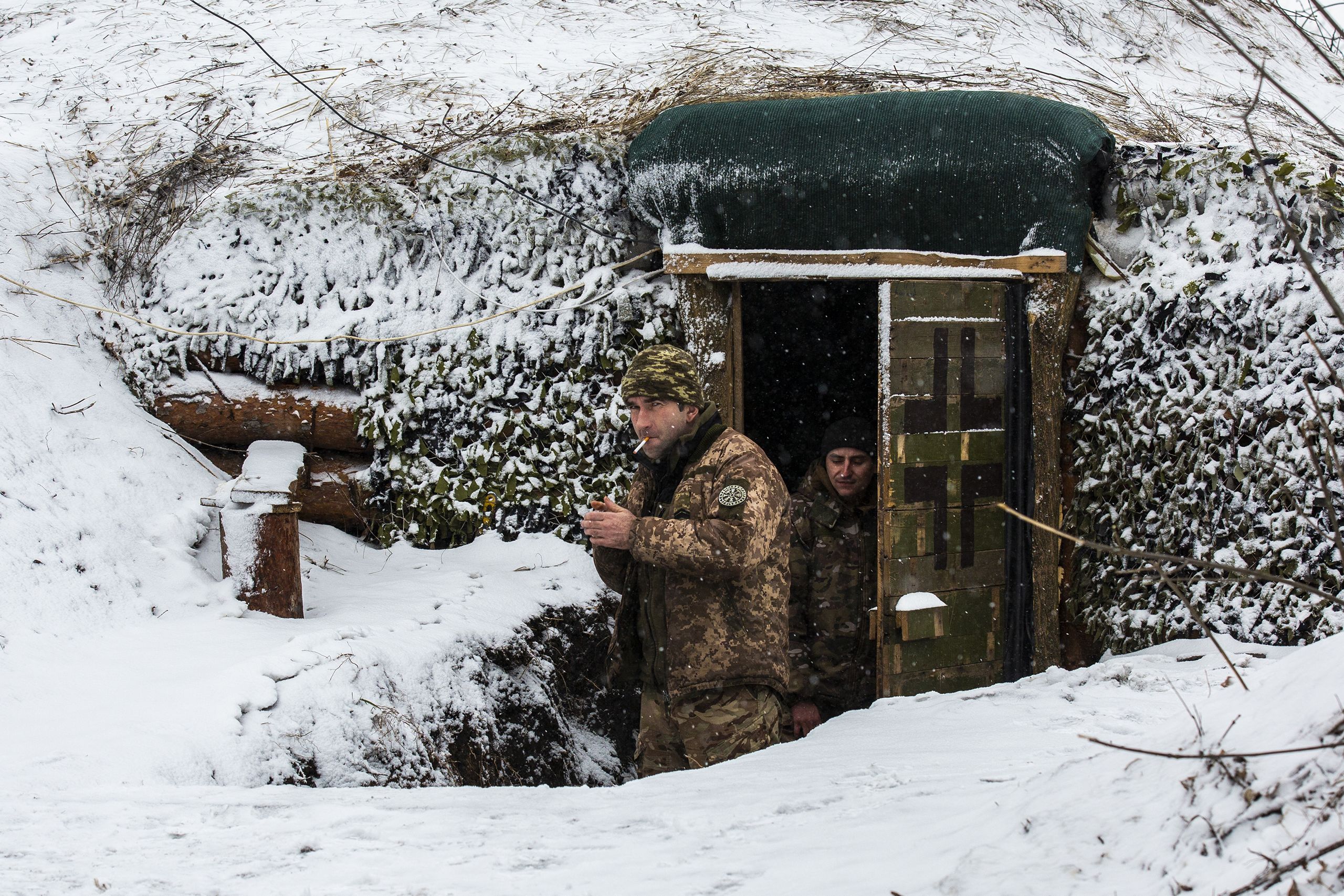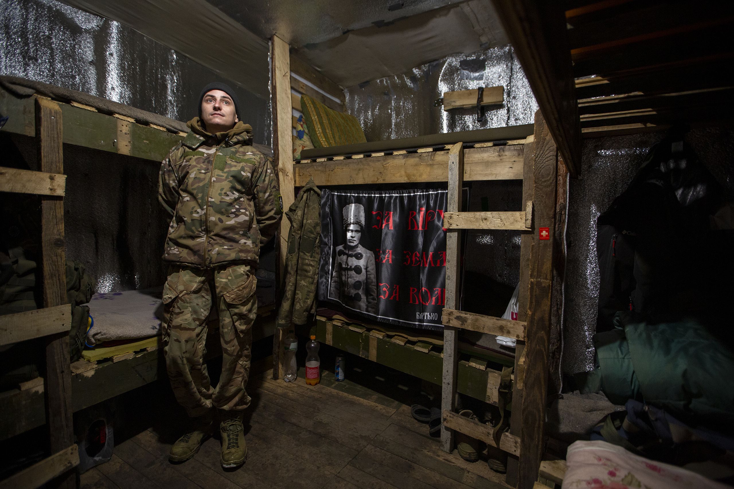 Konstantin tem o símbolo do batalhão Azov no casaco, mas aqui ninguém vê problema em pertencer a formações político-militares que, no Ocidente, são tantas vezes definidas como supremacistas e fascistas, muito devido às declarações de alguns dos seus ex-comandantes, dos quais o batalhão se tem dissociado nos últimos cinco anos. Muitos homens que combatem no Donbas desde 2014 dizem que foi a única forma de resistência durante meses, até o fragmentado, mal pago, mal equipado e pouco treinado exército ucraniano começar a organizar-se. Konstantin não liga a acusações. “No início, o batalhão Azov eram ultras do futebol, claro que essas claques têm extremistas, mas agora é um batalhão como qualquer outro, há judeus a lutar connosco, o nosso Presidente é judeu. É um pouco irritante continuar a falar-se disso como se fosse generalizado, como desculpa para o que os verdadeiros imperialistas e fascistas, daquele lado, estão a fazer aqui.”