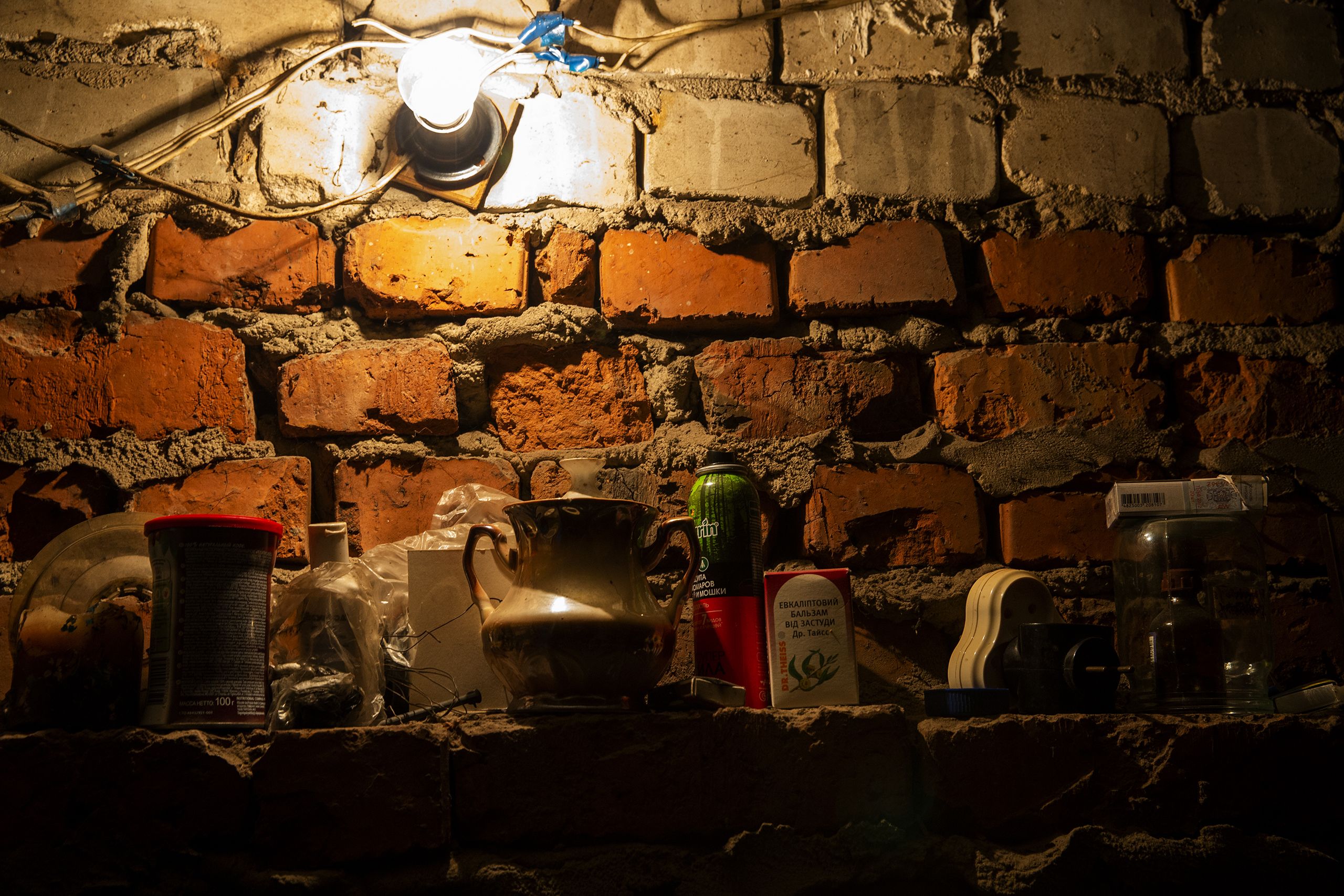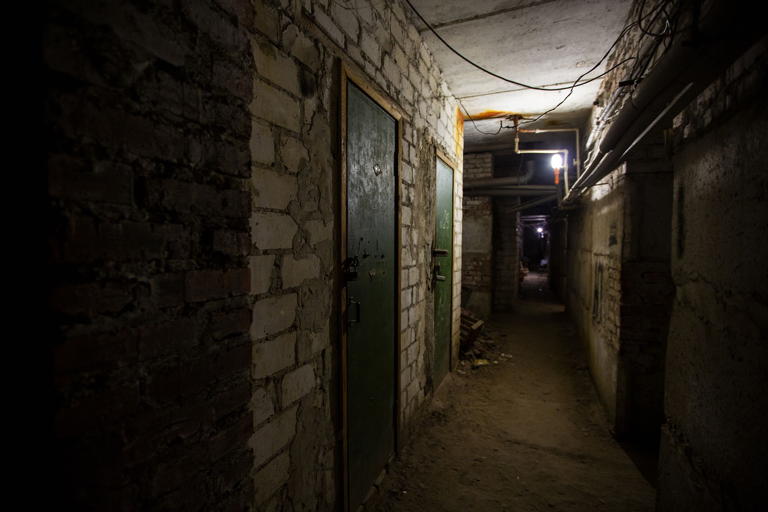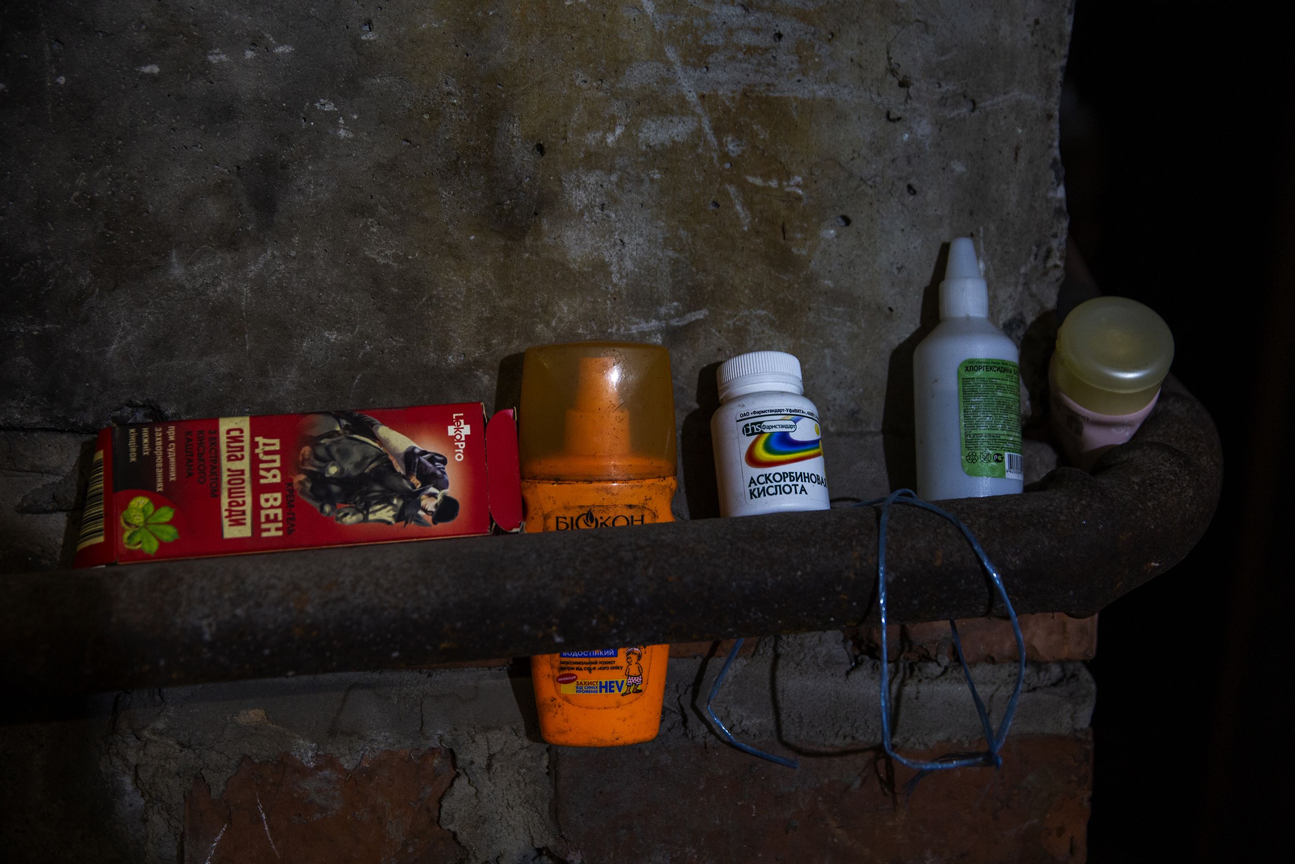 Encontramos Andriy Dovhopoliy a fumar à porta do abrigo antiaéreo que se tornou casa. Na parede alguém escreveu “crianças”. Uma seta indica as escadas que levam ao refúgio. Enquanto descemos, conta que só quando se zangou é que a mãe e a avó começaram a preparar as coisas para o caso de terem de dormir no abrigo antiaéreo.