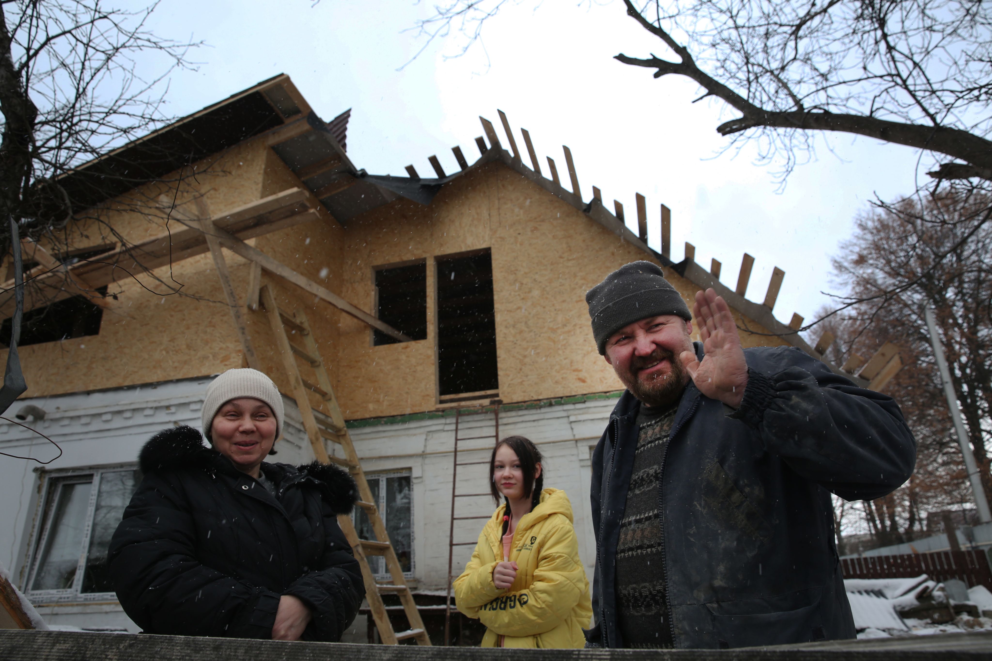 “Somos donos de uma empresa de construção e remodelação, vivíamos bem porque havia muita gente a mudar-se para aqui, é perto de Kiev, mais barato, menos barulhento. Mas a guerra acabou com o negócio. As pessoas fugiram, têm medo de voltar. A reconstrução é muito localizada em janelas e telhados e está a ser feita, na sua maioria, por organizações não-governamentais”. De cerca de 100 mil hryvnias por mês (€2500), a família passou a viver com o subsídio para deslocados internos, 11 mil hryvnias (€280) por duas crianças e dois adultos.