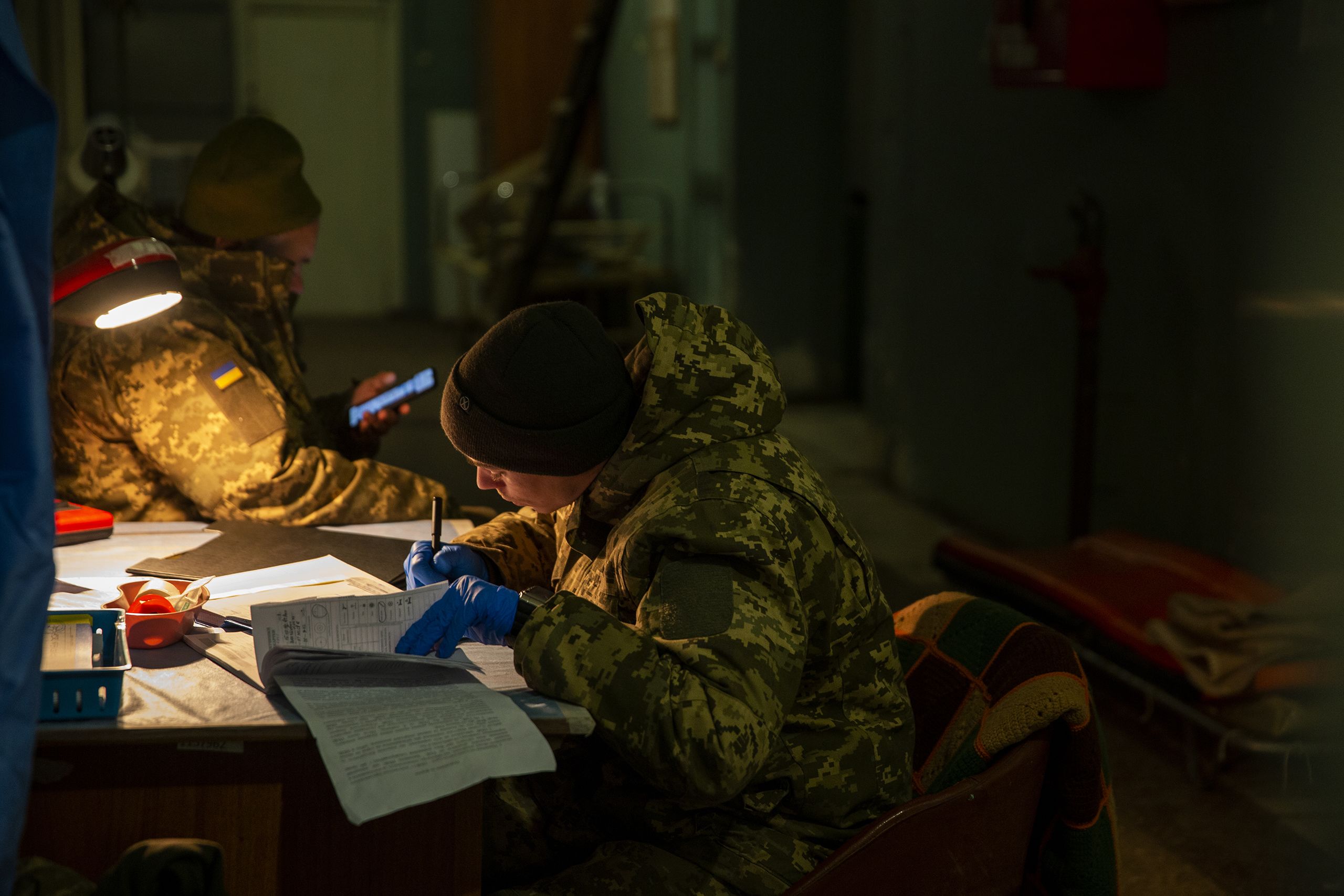 De regresso a Kostyantinyvka, recebemos resposta do centro de estabilização de feridos que pedimos para visitar. É para aqui que vêm os homens da frente, recebem cuidados médicos de urgência, por vezes só injeções de morfina ou outro embrutecedor de terminações nervosas, antes de seguirem para tratamentos mais demorados. O cirurgião Konstantin relata uma noite complicada, 17 feridos graves, não havia espaço para todos, espalharam-nos no chão, sobre cobertores. “Nas últimas duas semanas o número de mortos aumentou significativamente.”