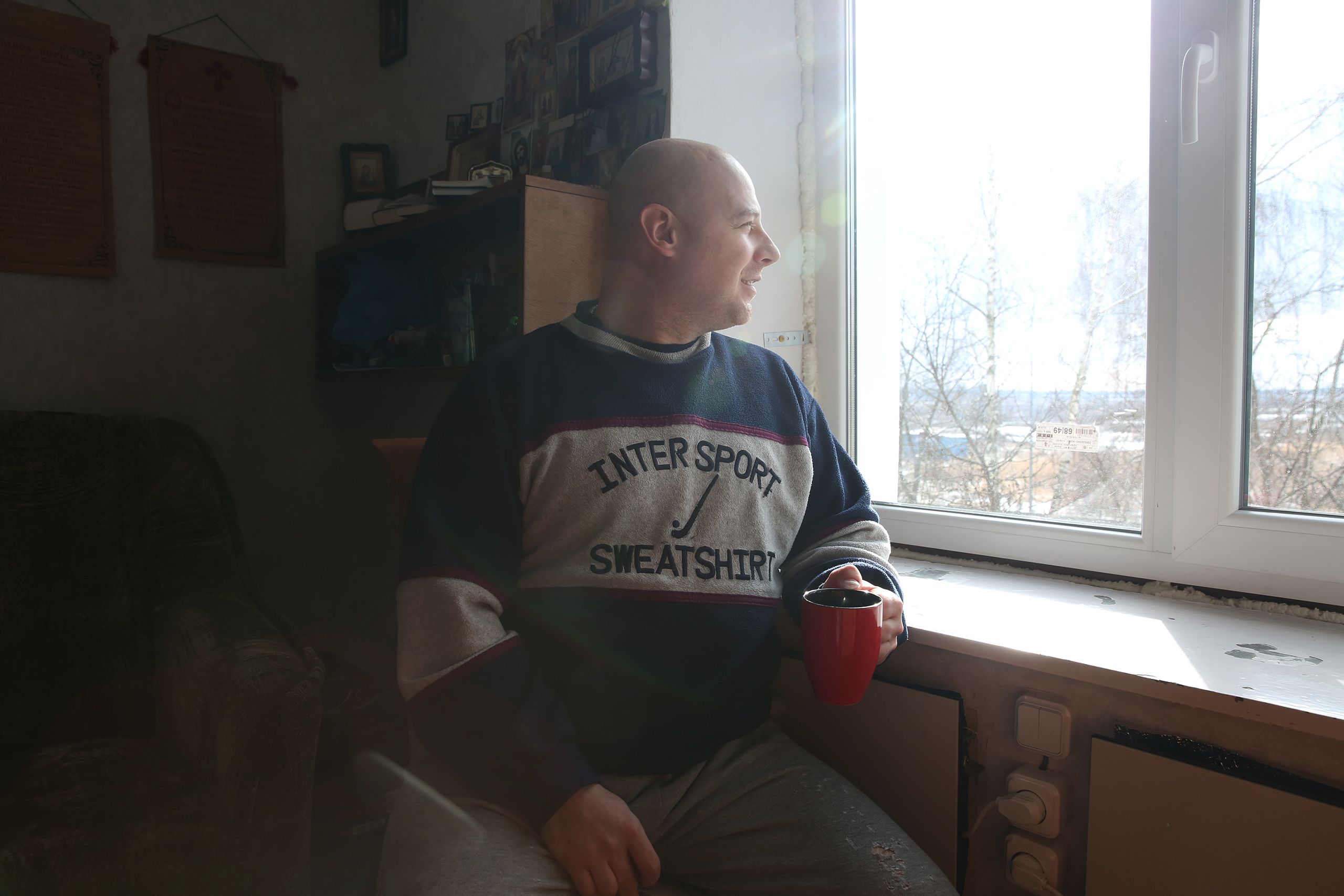 Serhii Khomenko, dono de um ginásio, 33 anos, vem à janela por acaso. Acenamos e vamos bater-lhe à porta. A casa, no segundo andar, não ficou muito destruída, só as janelas estouraram. “Tinha uma vida tão boa antes da invasão! Tinha um ginásio aqui perto, transformei-o num abrigo antiaéreo, porque é uma cave, mas nem ali estávamos seguros”, conta. No dia 2 de março, com medo de encontrar tanques no caminho, Serghii e mais 15 saíram de Borodyanka às 4 da manhã, pelas florestas, em direção ao oeste. Encontraram boleia até Lviv, e daí foram de comboio para a Alemanha. A mulher e o filho, de 7 anos, não quiseram voltar. Serghii não o vê há quase um ano. Quer ir à Alemanha, as videochamadas não matam saudades. Escolheu regressar porque foi vendo que a cidade não estava a ser reconstruída. “Temos de ser nós, mais ninguém o fará.”