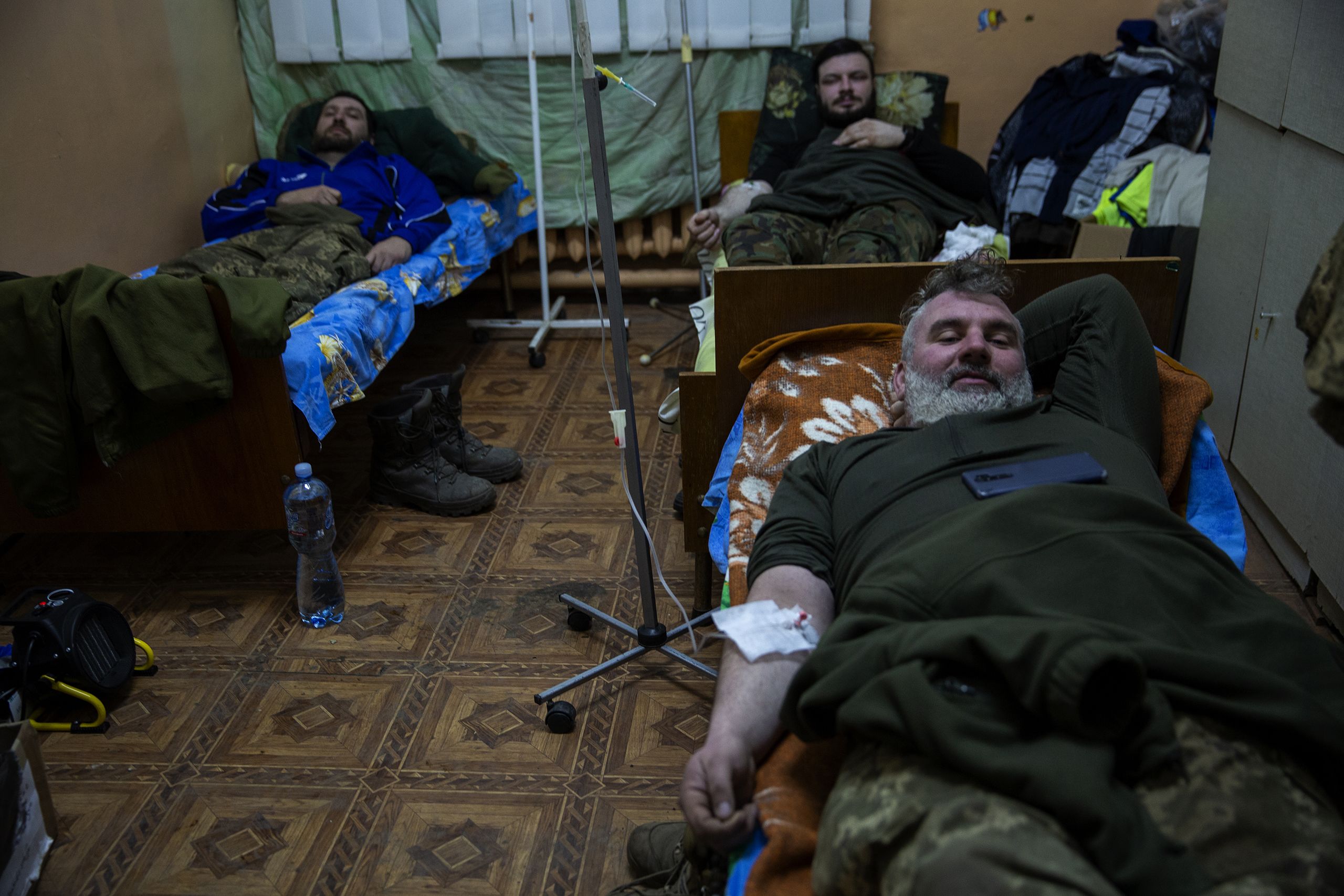 Voltamos para o hospital. Há homens com concussões das ondas de choque dos morteiros num quarto com cinco camas. Nada de grave. Soro e descanso. Aceitam falar, mas só um o faz. É o ex-presidente da câmara de Rava-Ruska, perto da fronteira polaca: Mykola “Kamaz” Zinko. O “Kamaz” vem de ter tido um acidente grave com um camião “Kamaz”. É figura pública, há artigos sobre ele em páginas de perfis de heróis da Ucrânia que se multiplicam pela internet. Esteve no Donbas a lutar em 2014 e 2015. “A nova ofensiva é bem visível, já cá está. Os reforços russos são na infantaria, enviam ondas de soldados, pode acontecer quatro ou cinco vezes por dia. É impressionante. Estão em Bakhmut com o exército regular, os Wagner, tudo junto”. Foi eleito pelo partido ultranacionalista Svoboda, mas não se reconhece da extrema-direita, apenas “defensor da Ucrânia”. O partido teve 2,5% nas últimas eleições, nem atingiu o limiar de 5% exigido para eleger um deputado.