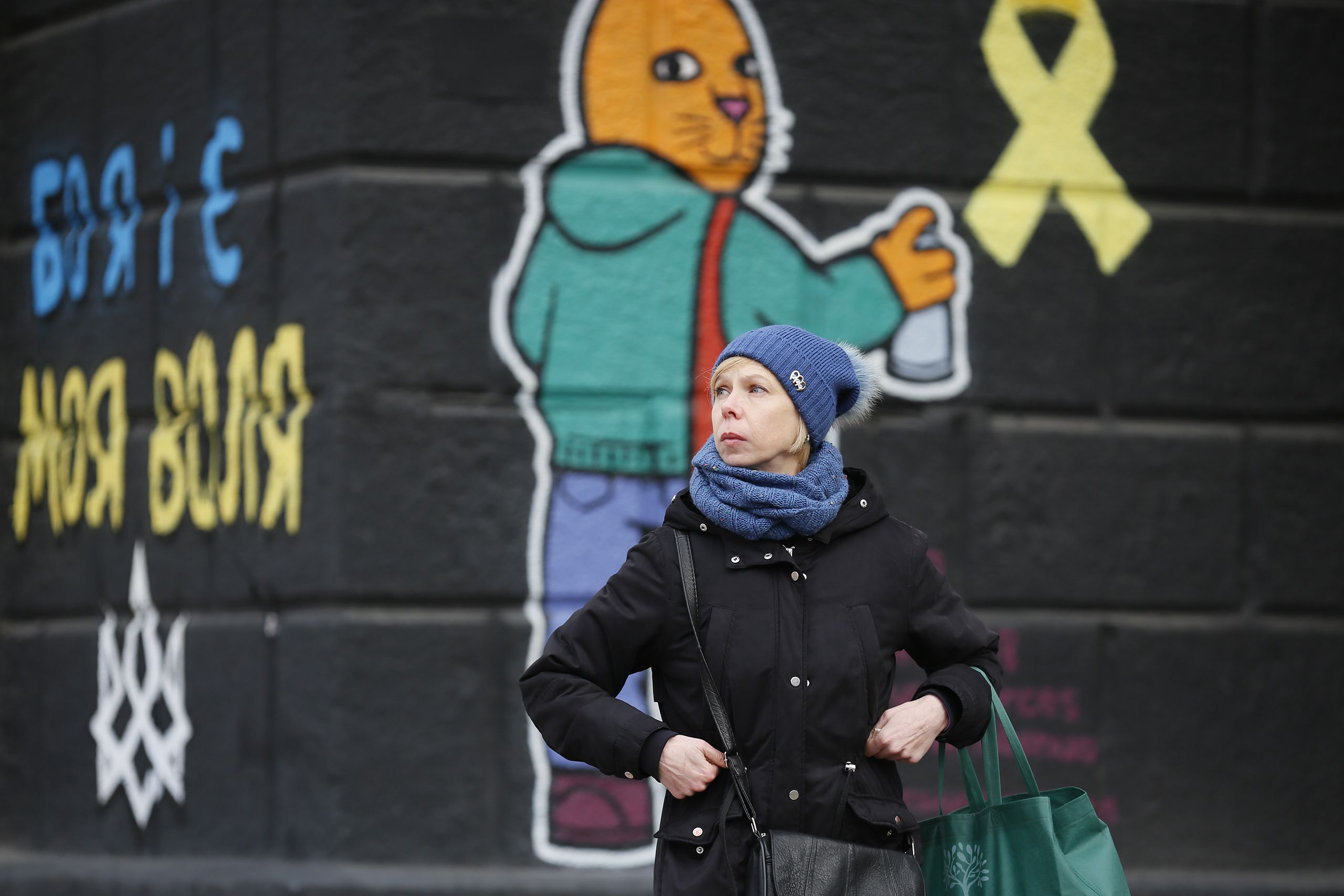 Amigos às gargalhadas porque um escorregou na neve luzidia e caiu, casais a comprar café nos quiosques espalhados pelo largo passeio da avenida Khreshchatyk, a maior artéria da cidade; toda a gente fecha mais o kispo, enterra um pouco mais o gorro, duas amigas agarram-se, as rajadas de vento gelam os ossos. Debaixo do chão, nas paragens de metro, vende-se milho com manteiga em copinhos de plástico, mais café, indumentária tradicional para mulheres, mas sobretudo imitações das camisolas grossas verde-azeitona com capuz que o Presidente Volodymyr Zelensky usa nos discursos noturnos à nação. “I’m Ukrainian”, lê-se, estampado na frente.
