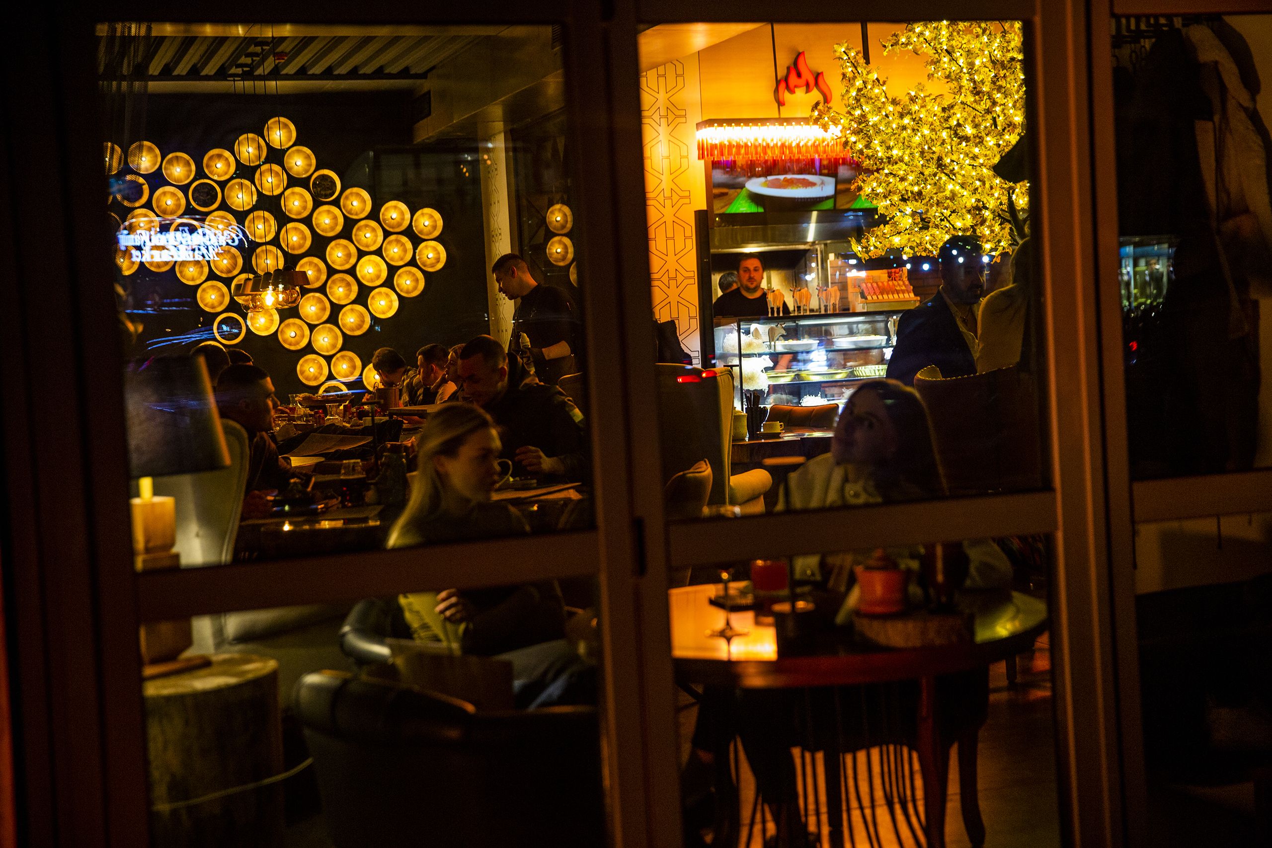 Hoje a noite pertence a Marina. O bar e galeria de arte Modi — o nome vem do artista italiano Amedeo Modigliani — está com casa cheia para uma leitura de poesia, aberta aos que tenham a coragem de derramar a alma ao microfone. A estrela é Marina Tseluiko, 40 anos, mãe, poetisa, pasteleira antes da guerra e cozinheira do batalhão Azov durante quatro meses. “Já sei que vão perguntar se são fascistas. Não, são iguais aos outros homens corajosos que defendem a Ucrânia.”